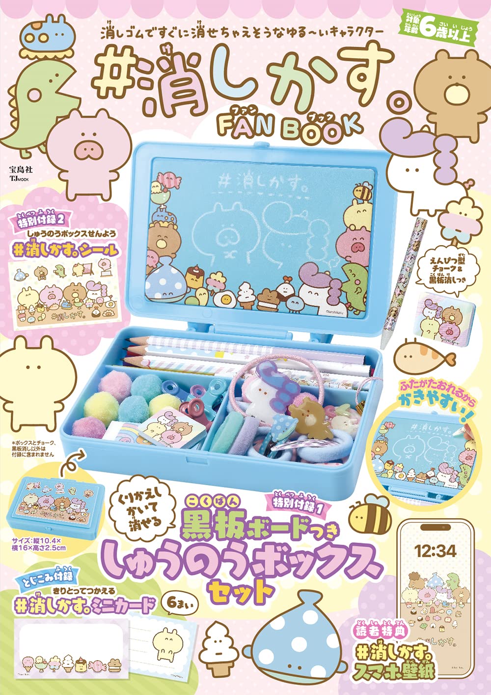 カプセルトイなどで大人気! 見ているだけで癒やされるゆる~いキャラクター「#消しかす。」のはじめてのファンブックがついに登場します!特別付録は「#消しかす。」の仲間がデザインされた収納ボックス!