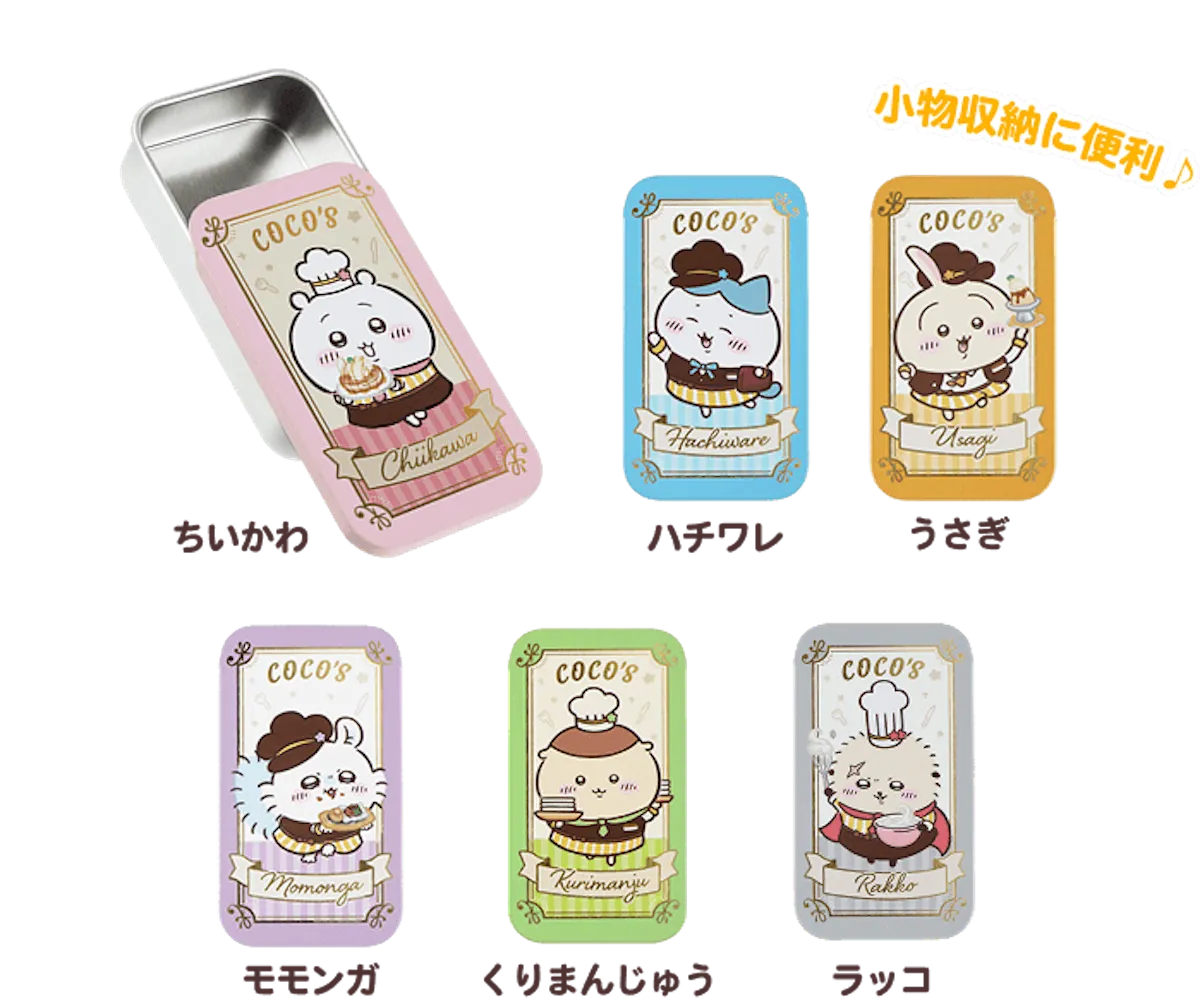 第3弾は便利なスライドケース。店員さん風の制服姿ちいかわたちが描かれたデザインがとってもキュート♡ 全6種のうち1つがランダムでゲットでき、キャンディやヘアアクセなどを入れるのにぴったりです。
