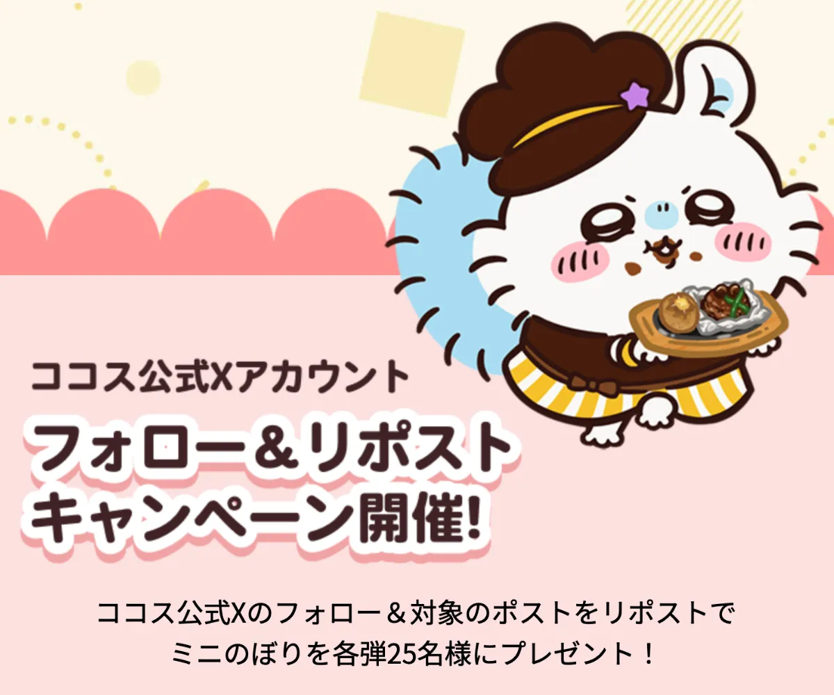 キャンペーン特設サイト(https://chiikawa2025.cocos.jp/)にてご確認ください。