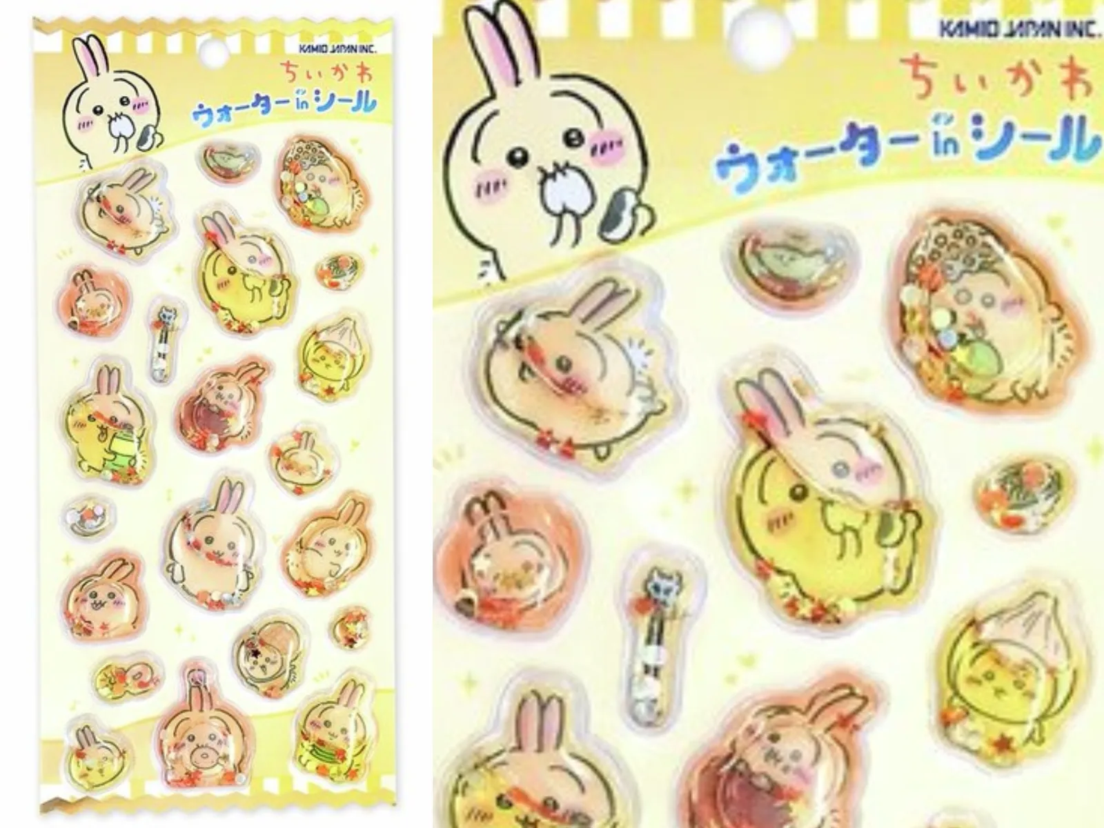 ちいかわの親友、「ウラ」「ヤハ」など大声でよく叫ぶ「うさぎ」デザインのウォーターインシール。“星の水”が入ったぷっくりデザインで、ゆらゆら&キラキラ、みているだけでとっても癒されそう。
