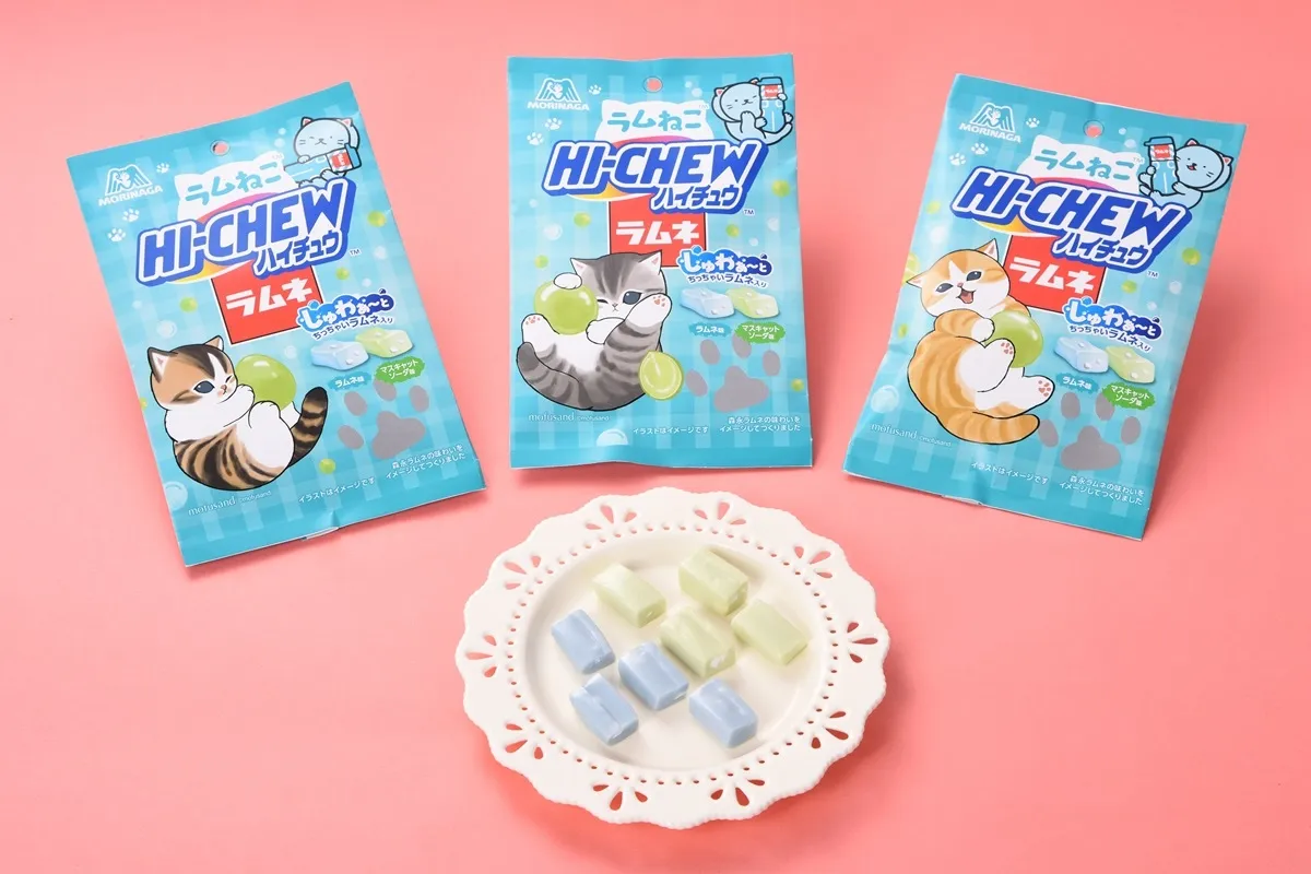 かむほどしあわせなしゅわぁ〜とラムネ入りのハイチュウです。「mofusand(モフサンド)」コラボのパッケージデザインは3種類です。※数量限定
