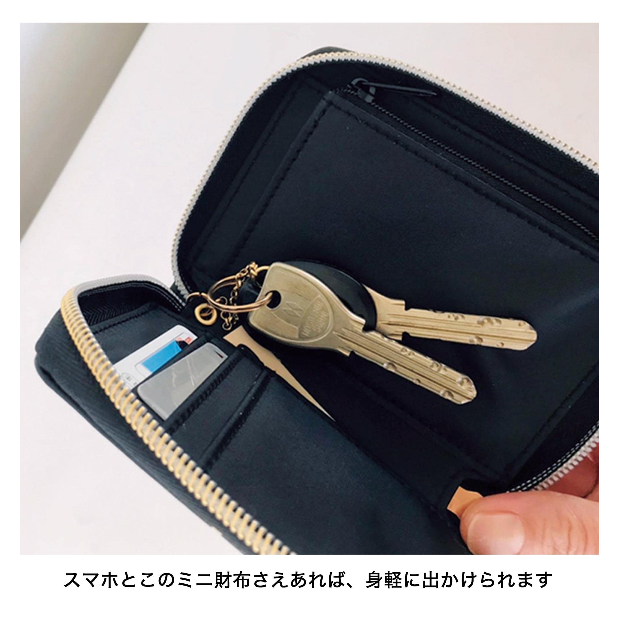 小銭やお札、鍵など、貴重品がひとまとめになるから、スマホとこのミニ財布さえあれば身軽に出かけられます。