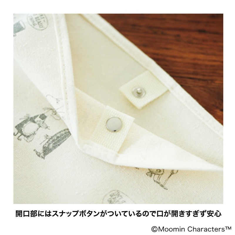開口部にスナップボタンがついているので、口が開きすぎず安心。