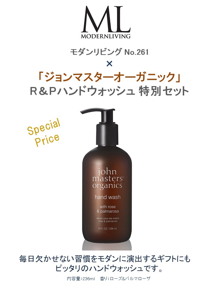 | 雑誌名 | モダンリビング No.261 ×「ジョンマスターオーガニック」R&Pハンドウォッシュ 特別セット |