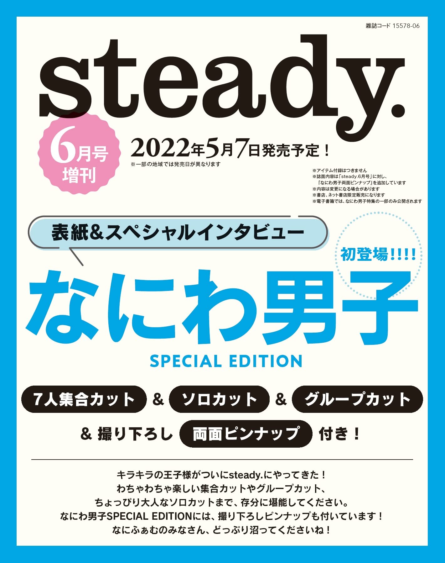 | 雑誌名 | steady.(ステディ.)2022年6月号増刊 なにわ男子 SPECIAL EDITION |