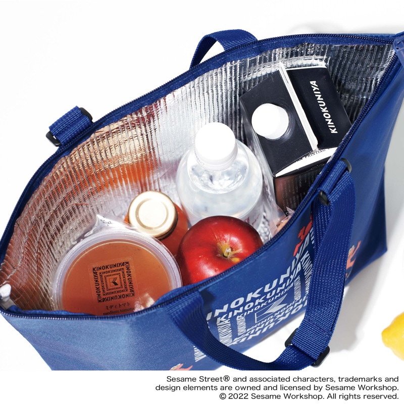 素敵なあの人 2022年6月号の雑誌付録は、KINOKUNIYAとセサミストリートがコラボレーションした、保冷保温バッグが登場。こちらの通常版は、紀ノ国屋ロゴと、赤いふさふさの毛と大きな目が印象的なエルモを組み合わせたデザインです。