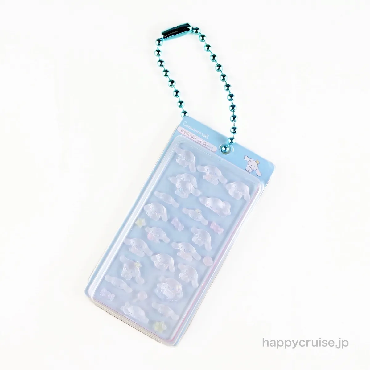 みんなから愛されているシナモロール!真っ白なシナモンと、爽やかなブルーの組み合わせがとってもピュアなデザイン。本物のボンドロをそのまま小さくしたような、ブリスターパッケージに入ったデザインが可愛すぎます。ボールチェーン付きなので、バッグやポーチにつけて、一緒におでかけ♪