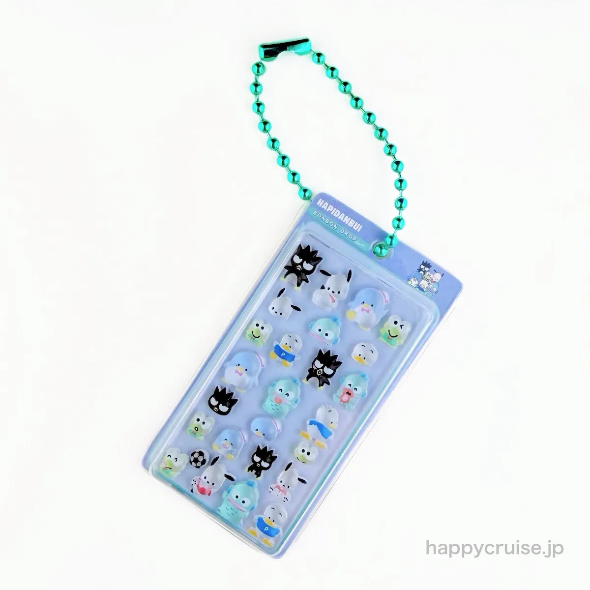 サンリオの男子キャラユニット、はぴだんぶい! 爽やかなブルーを基調とした、6人の個性がぎゅっと集まった賑やかなデザイン。本物のボンドロをそのまま小さくしたような、ブリスターパッケージに入ったデザインが可愛すぎます。ボールチェーン付きなので、バッグやポーチにつけて、一緒におでかけ♪
