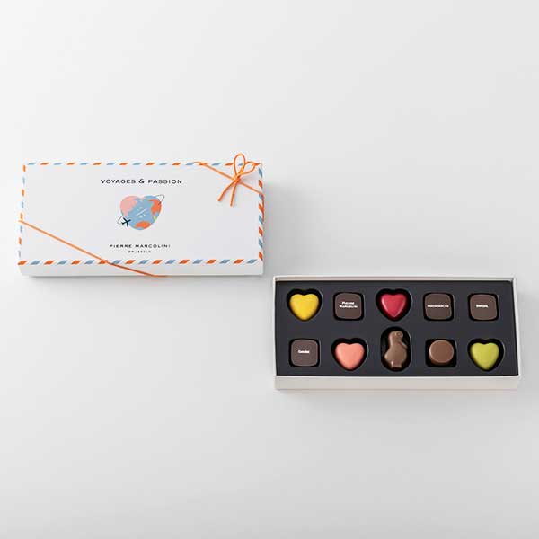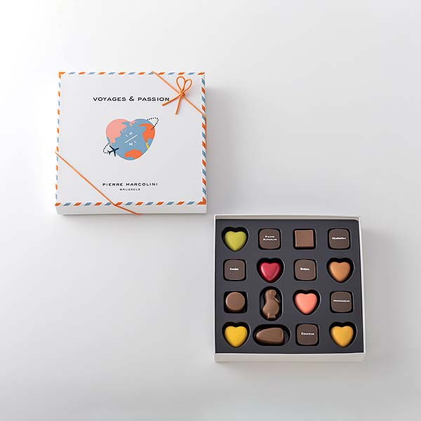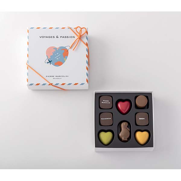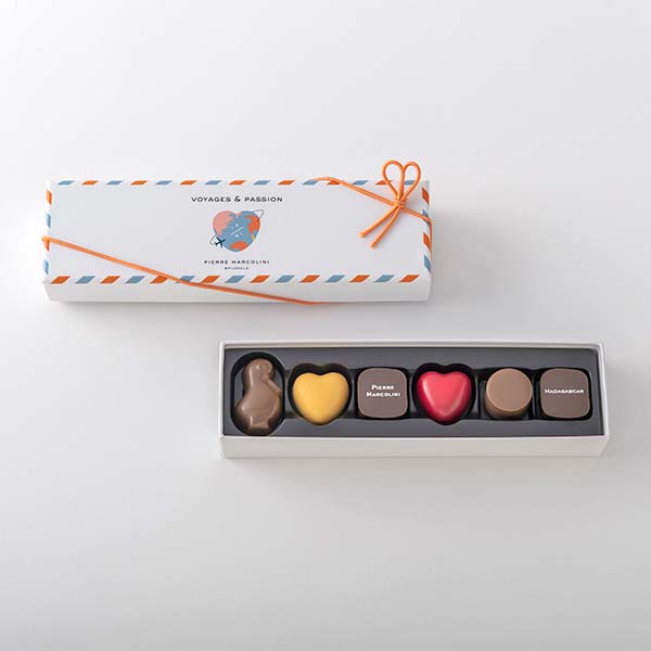世界中を旅したマルコリーニ氏こだわりのチョコレートが味わえる『バレンタインセレクション』。旅をイメージしたキュートなパッケージに、リニューアルしたハート型のチョコレート「クールシリーズ」や、代表作の「ピエール マルコリーニ グラン クリュ」など、こだわりのプラリーヌが詰め込まれています。4個入り〜16個入りまで多彩なバリエーション。贈る相手に合わせてセレクトできます。