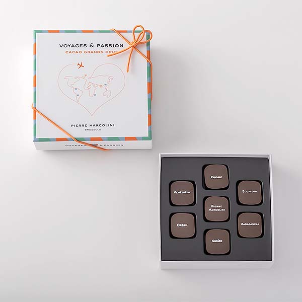 2015年、ベルギー王室御用達の栄誉を授かった、ピエールマルコリーニの最大の特徴は「カカオへのこだわり」。『グラン クリュ セレクション』では、最上級や最高峰という意味を持つグランクリュから、7種類をセレクト。産地ごとの個性や味わいの違いを食べ比べできます。