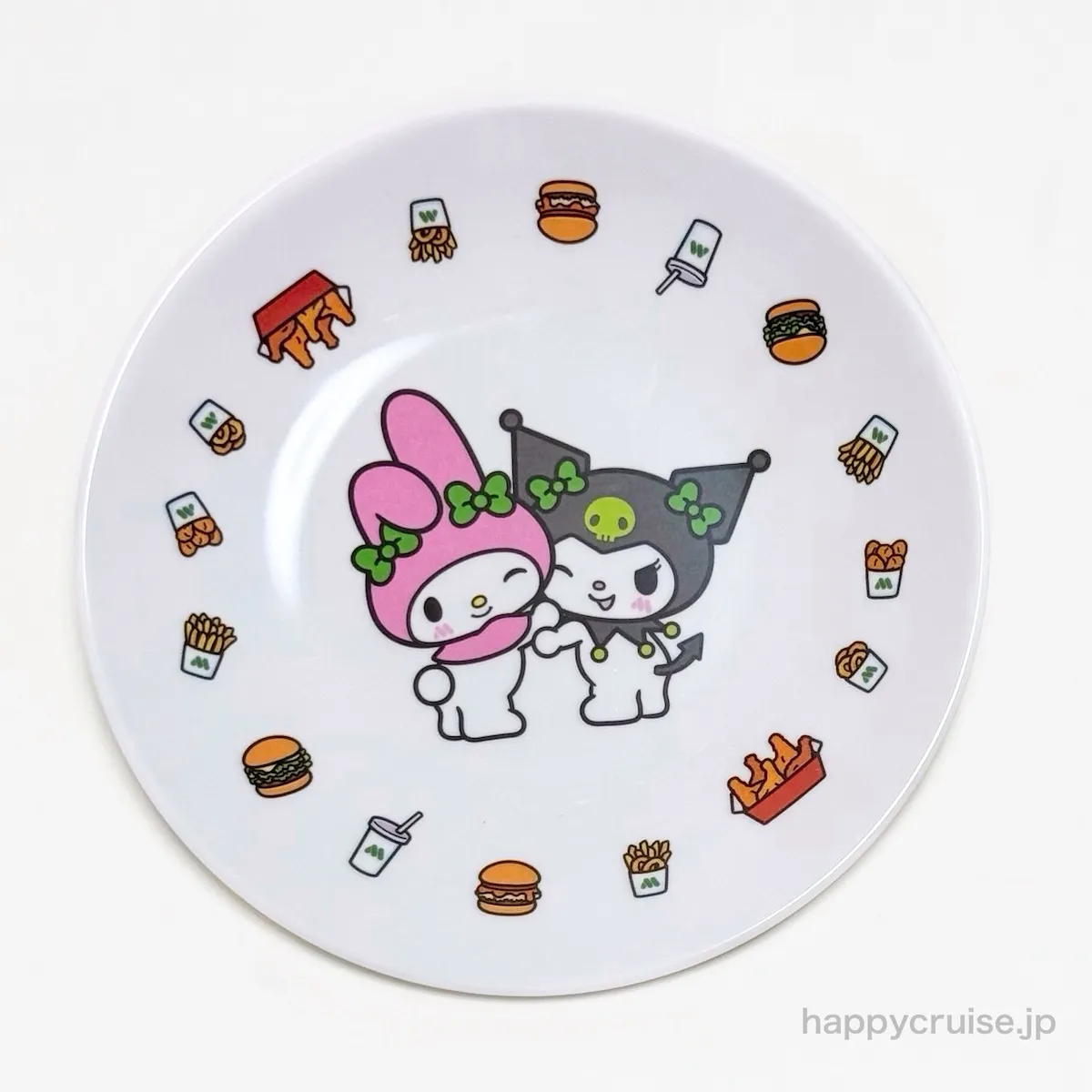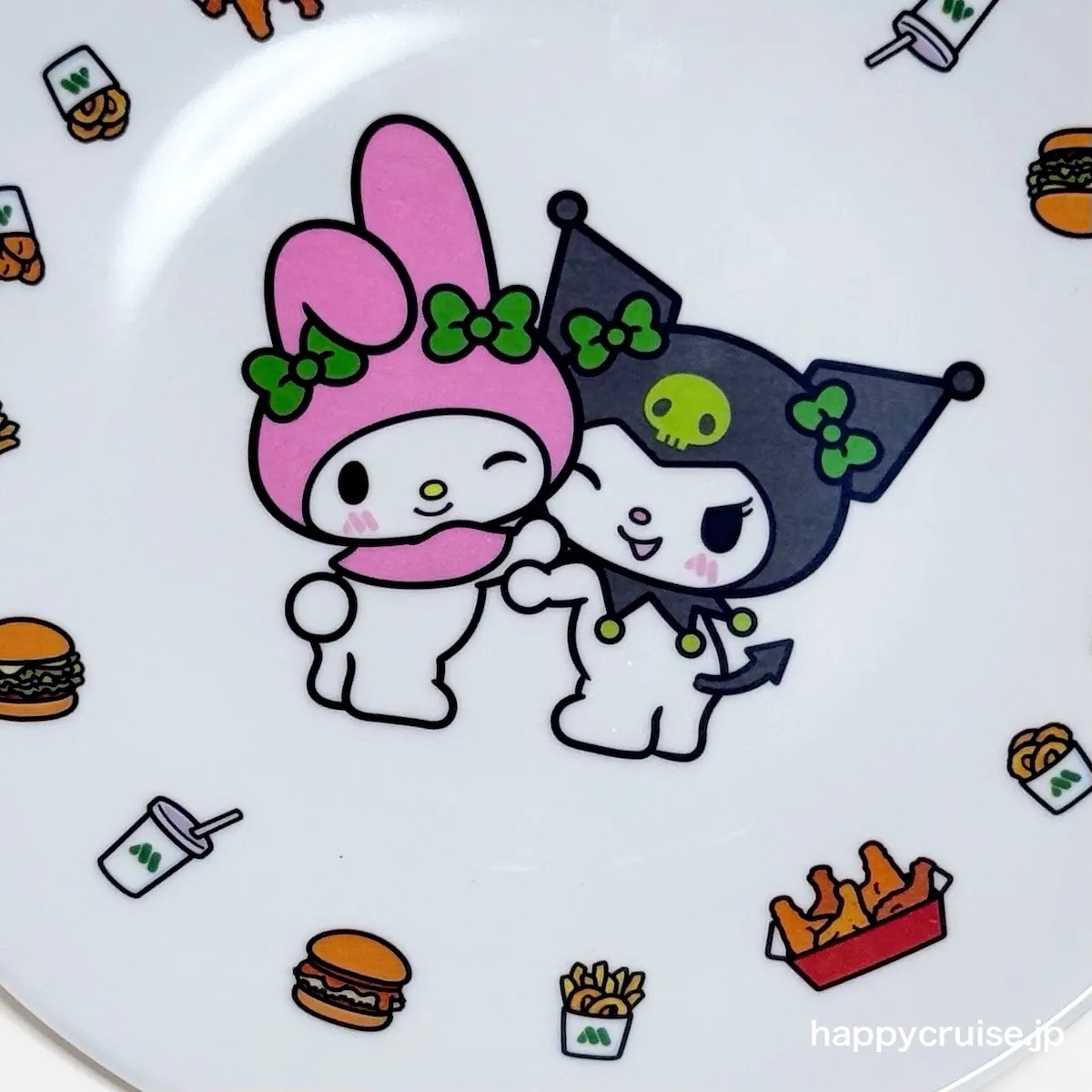 マイメロディ&クロミの仲良し姿を中心に、モスバーガーの人気メニューがぐるっと可愛くデザインされています。
