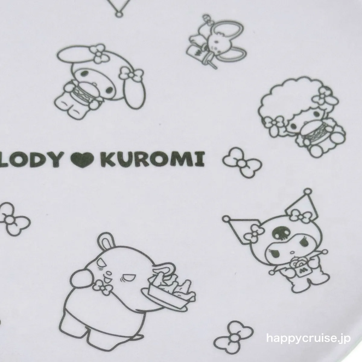 マイメロディ&フラットくん&ピアノちゃん、クロミ&バクが描かれたキュートな総柄デザイン。