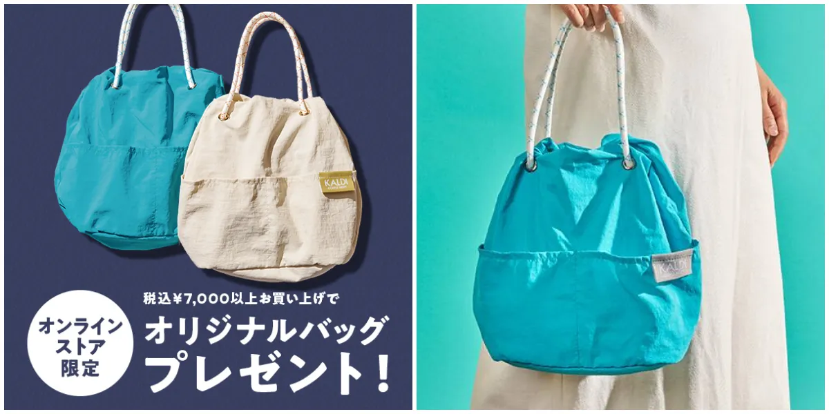 10月14日(火)より、カルディコーヒーファームのオンラインストアにて、『ロープハンドル巾着バッグ』がもらえるキャンペーンを期間限定で実施中です。