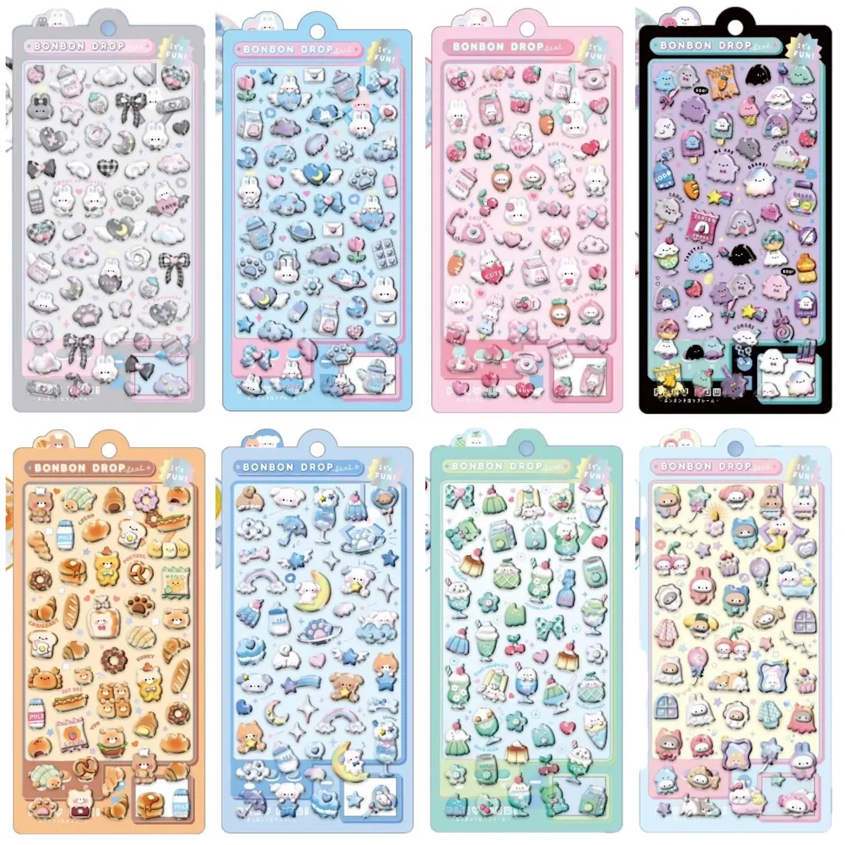 ぷっくりつやつや大人気のボンボンドロップシールから、クーリアオリジナルデザイン。大人可愛い「しろくろボンボン」から、見ているだけでほっこり癒される「きぐるみボンボン」まで、8種類がラインアップ!