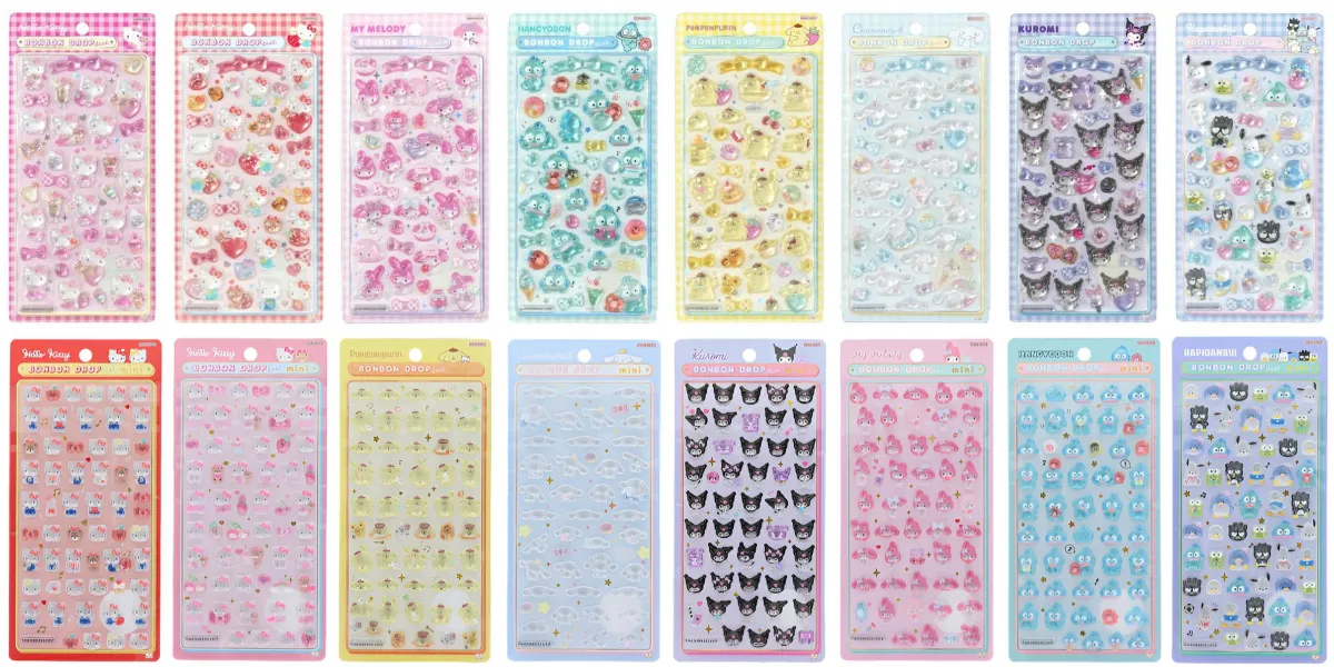 ラインアップは「サンリオ ボンボンドロップシール第2弾」と「サンリオ ボンボンドロップシールミニ」。通常サイズとミニサイズの合計16種が一度に手に入るビッグチャンスです。
