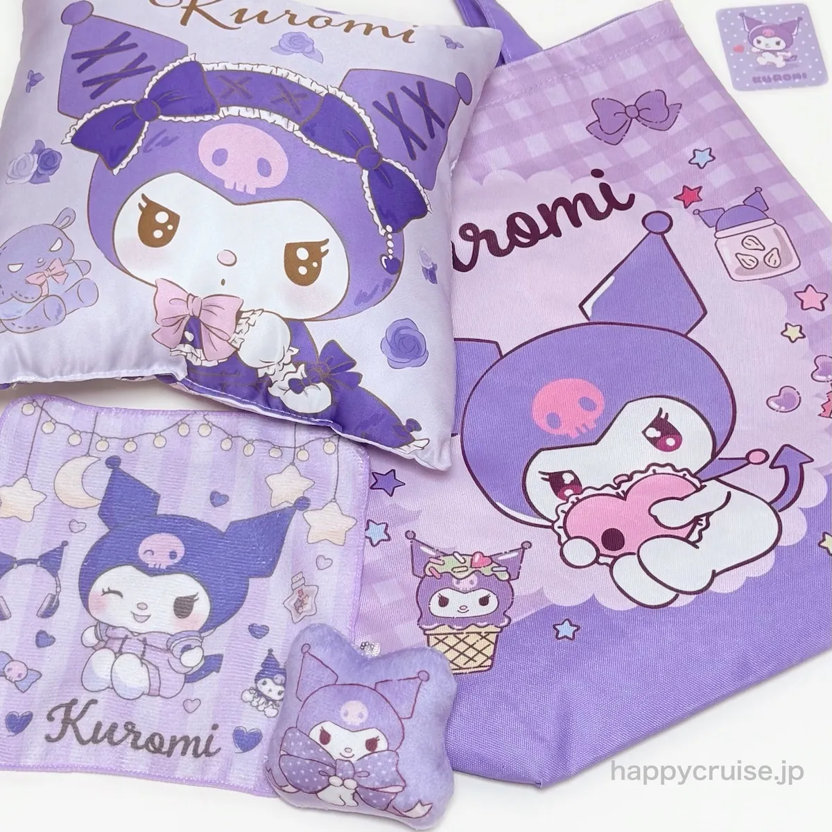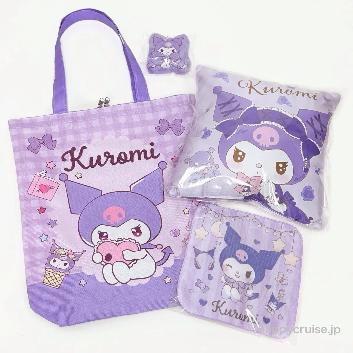 クロミのかわいいアイテムが詰まった、ラッキーバッグ1000。トートバッグ、スクエアクッション、マイクロファイバープチタオル、マスコットの豪華4点セットが驚きの1000円で登場!