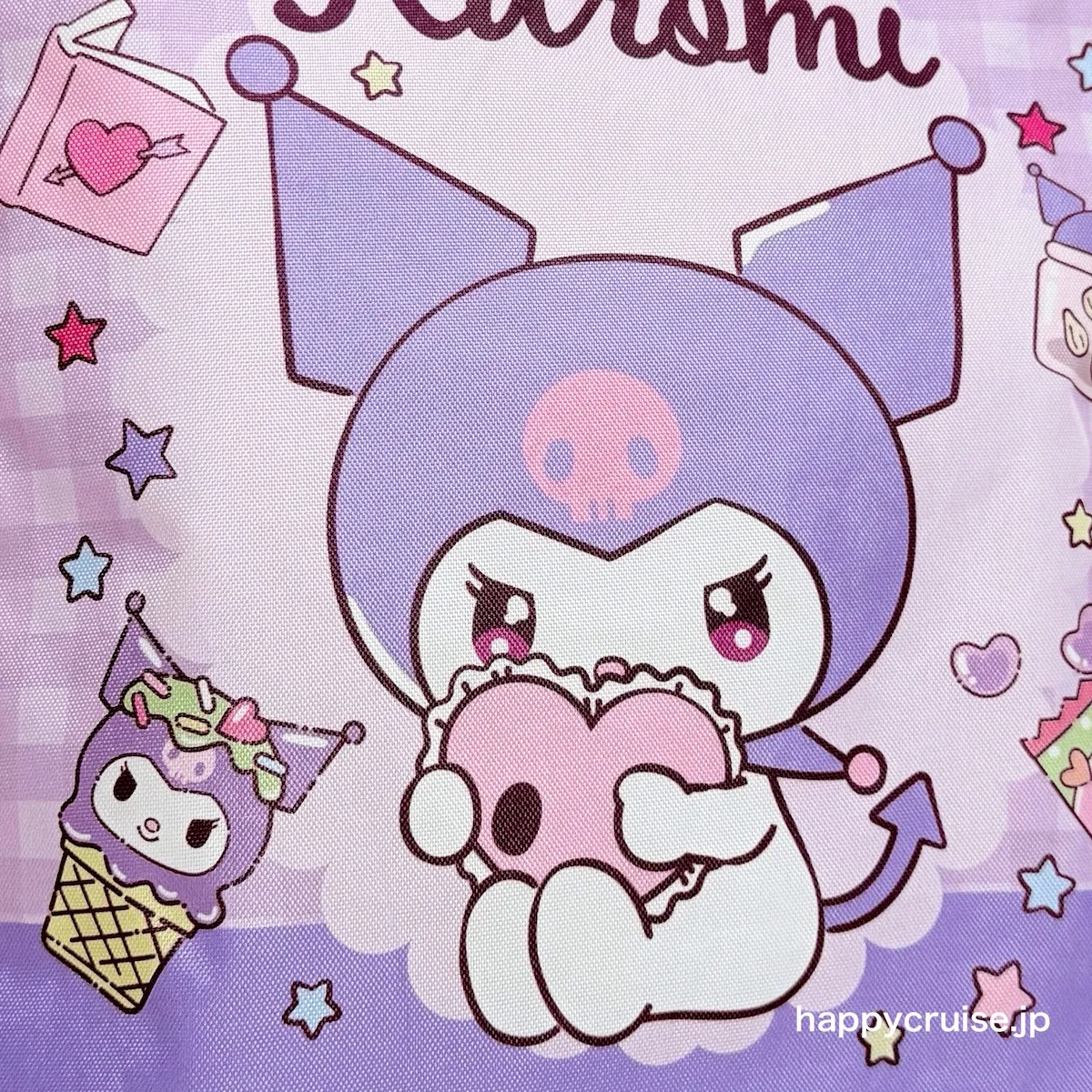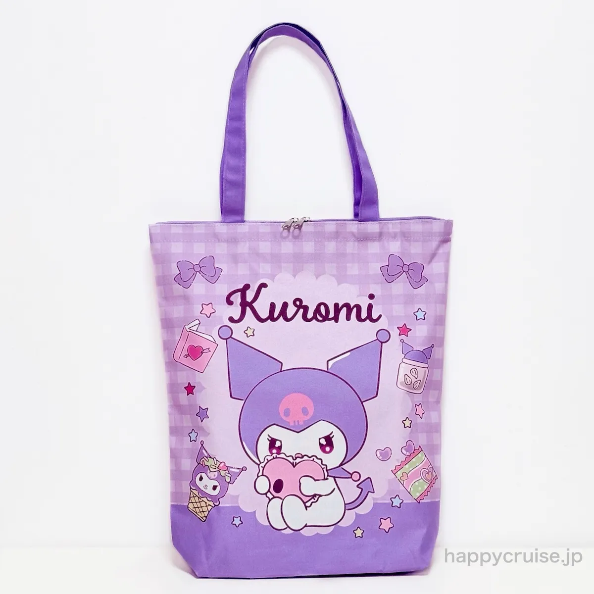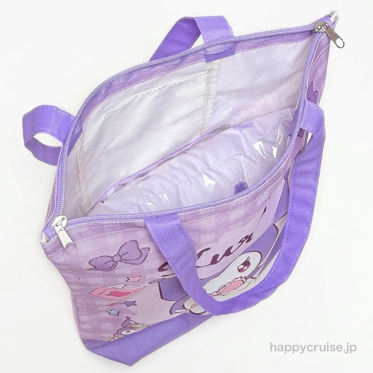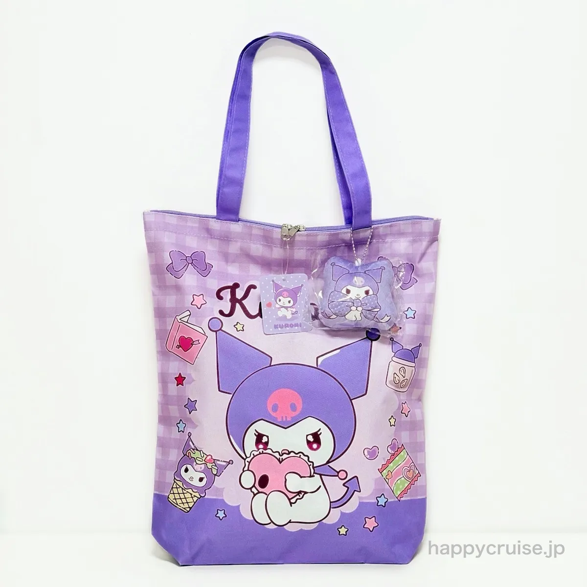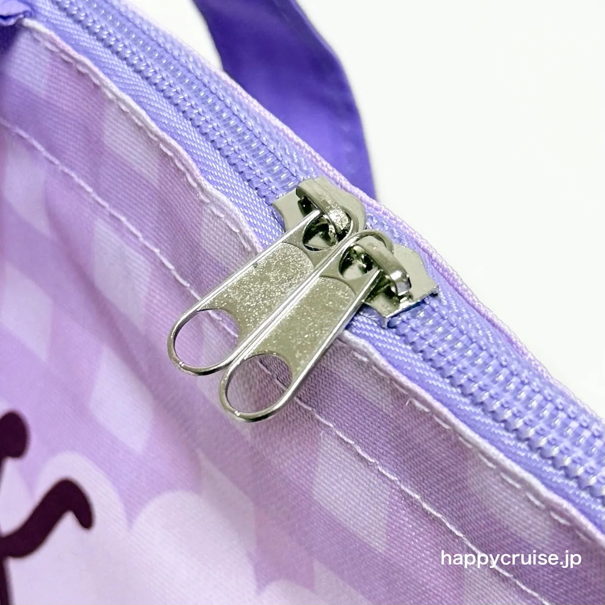 大人かわいいパープルカラーを基調としたクロミデザインのトートバッグ。大きめサイズで肩かけできるから、デイリーから旅行まで活躍してくれること間違いなし。