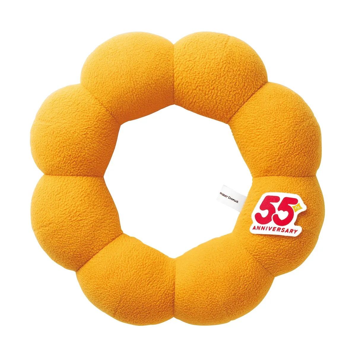 人気のポン・デ・リングがなんとぬいぐるみに!55周年のオリジナルワッペンがついたデザインで、あなたもポン・デ・〇〇になれちゃうかも!?