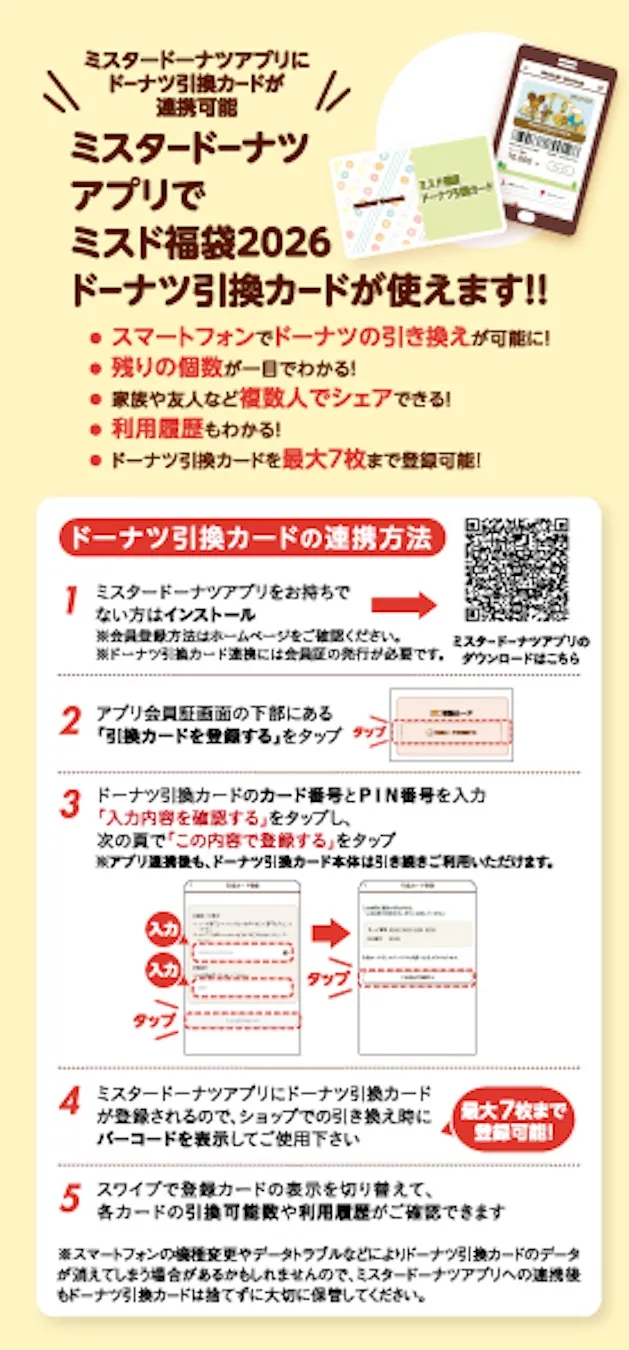 ミスタードーナツアプリとミスド福袋2026ドーナツ引換カード連携方法