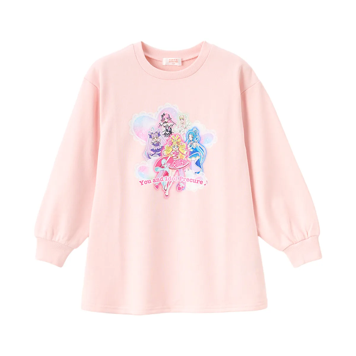 キュアアイドルのイメージカラーピンク色のトレーナー。普段着としても、お出かけ着としても使いやすい、シンプルかつ可愛いデザイン。