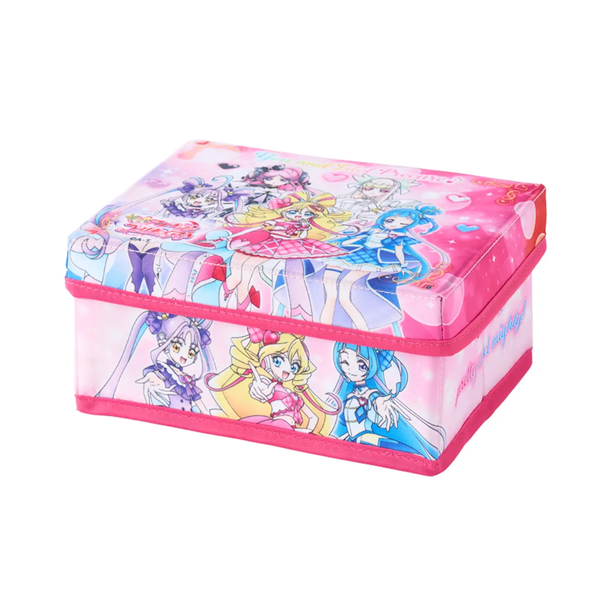 プリキュアたちが勢ぞろいのおかたづけBOX。おかたづけするのが楽しくなりそうな可愛いデザイン。