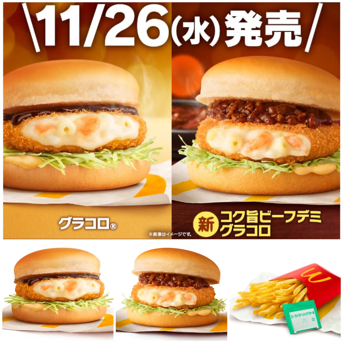 グラコロファンの皆さんお待ちかね!マクドナルドの冬の風物詩「グラコロ」の季節がやってきました。寒さが厳しくなるこの季節にぴったりな人気バーガー。今年はビーフシチューのような贅沢な味わいが楽しめる新作「コク旨ビーフデミグラコロ」が仲間入り。2025年11月26日(水)から全国のマクドナルド店舗にて期間限定で販売スタートです♪