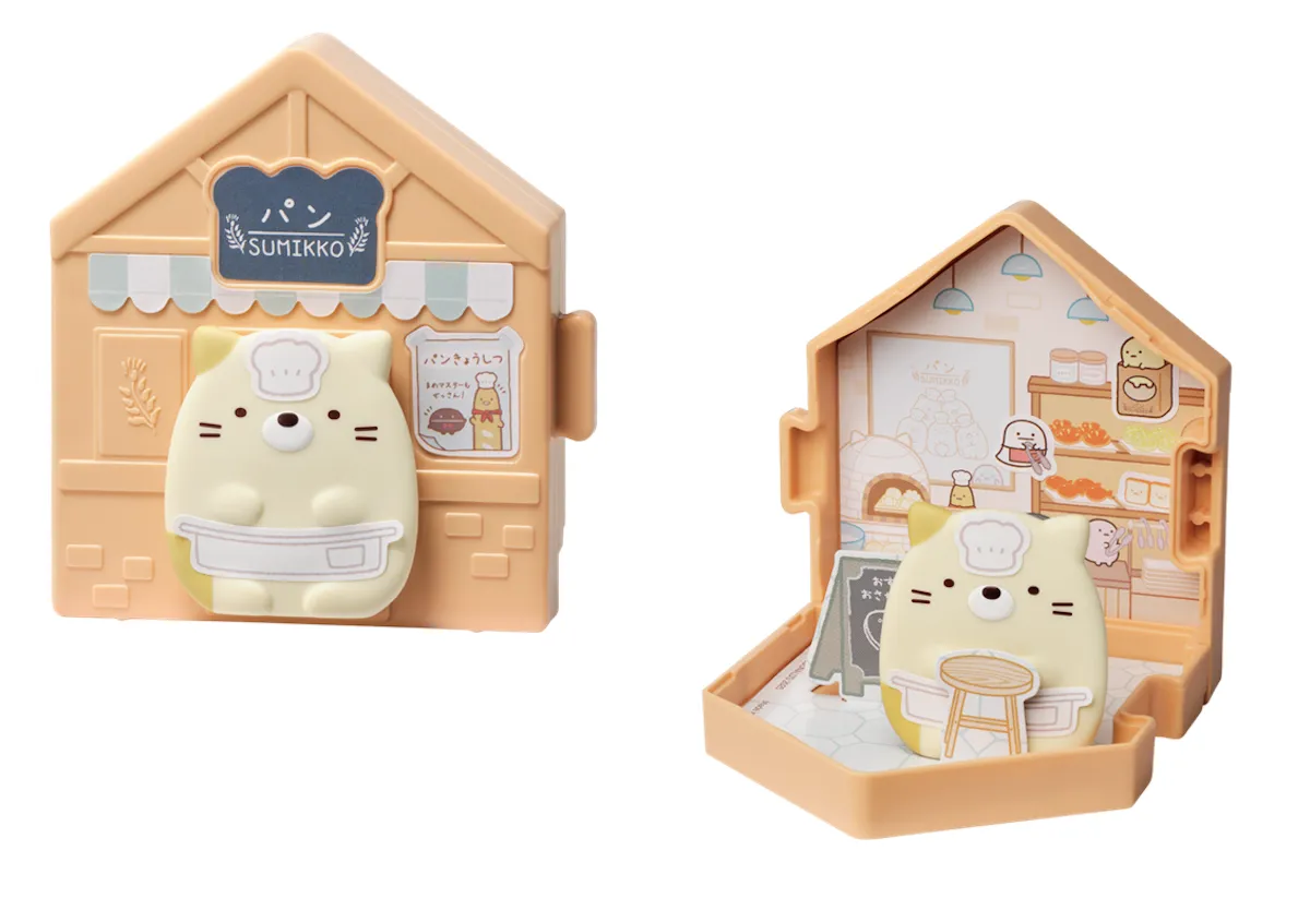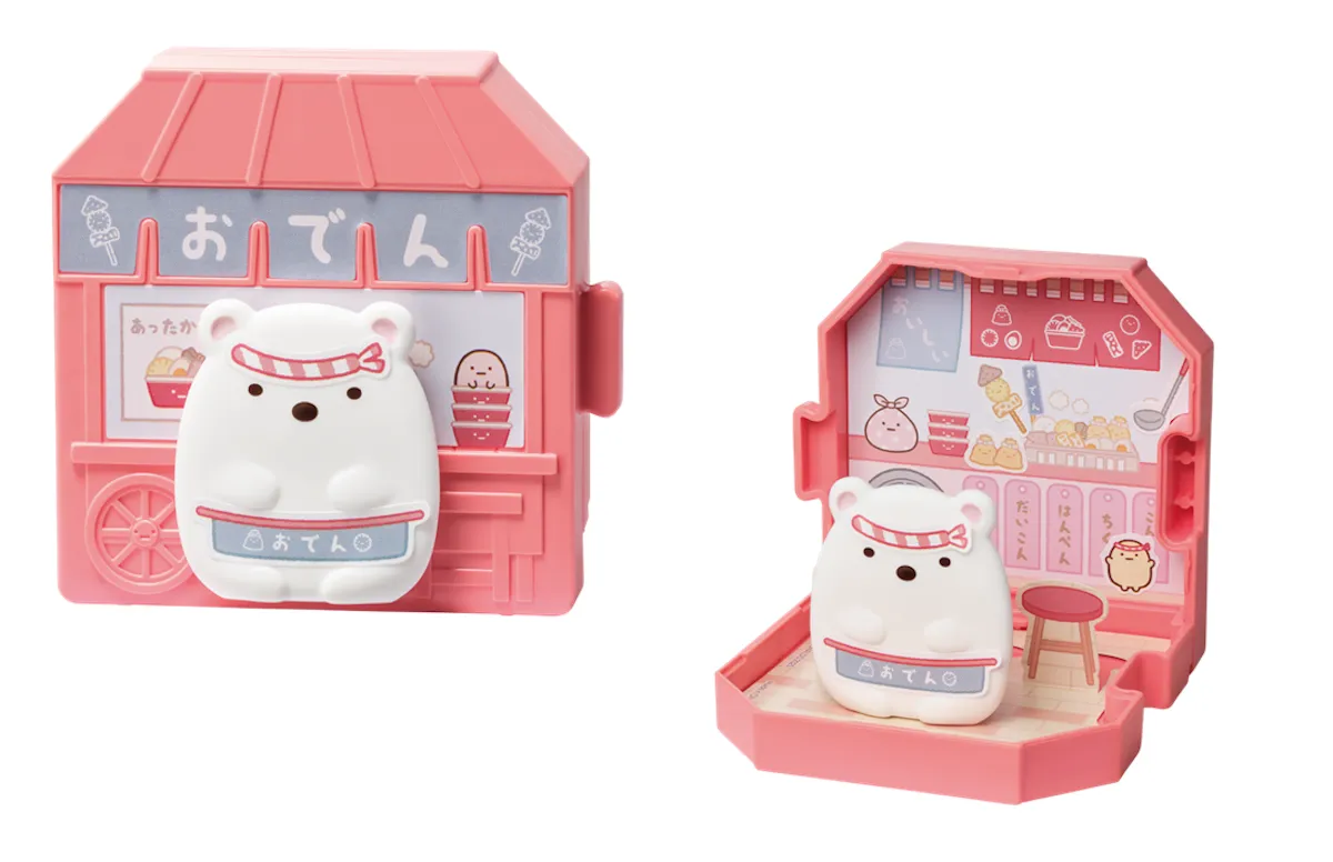 第1弾は「お店屋さんプレイセット」。とんかつのマクドナルドレストラン、しろくまのおでん屋さん、すみっコたちが働くかわいいお店がテーマ。シールを貼ったり、動かして遊んだり、想像の世界がどんどん広がります。