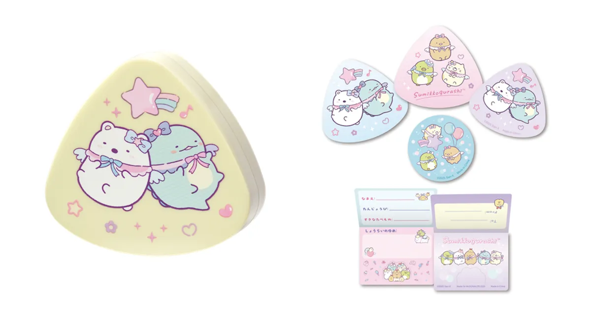 すみっコたちが全員集合した“箱推し”デザイン。アイドルグループのような雰囲気で、ファンにはたまらないセットです。メモやステッカーで手紙遊びももっと楽しくなりそう!
