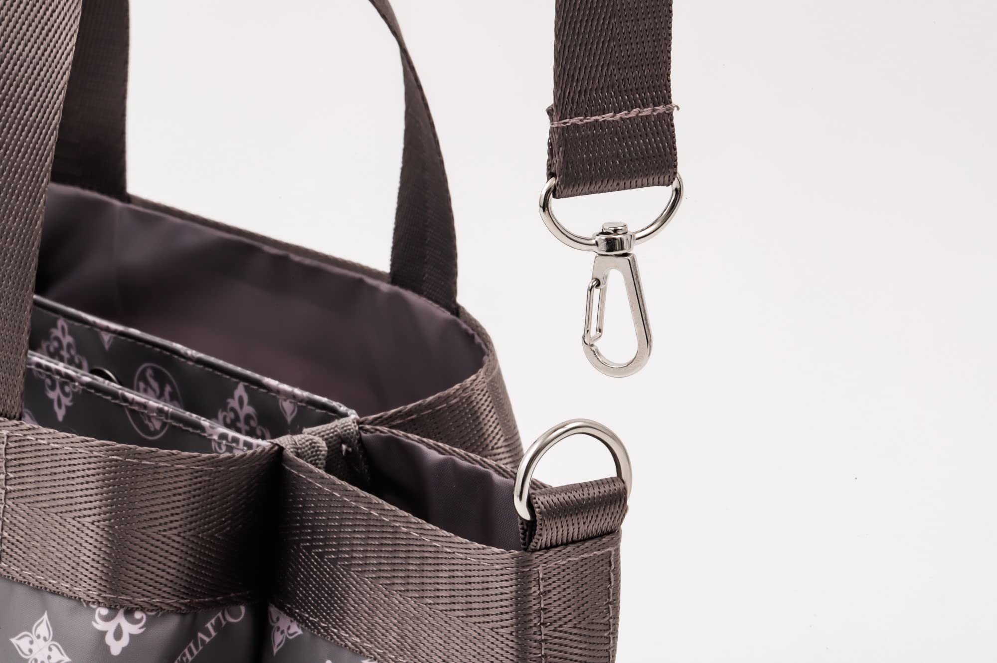 ショルダーストラップは、ワンタッチで着脱可能。コーデやシーンに合わせて、斜めがけ、ハンドバッグと2WAYで使えます。