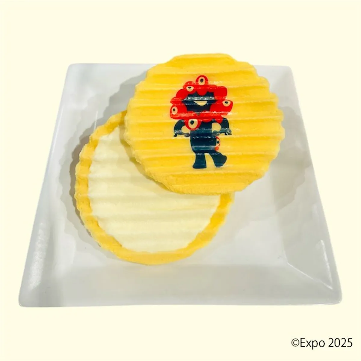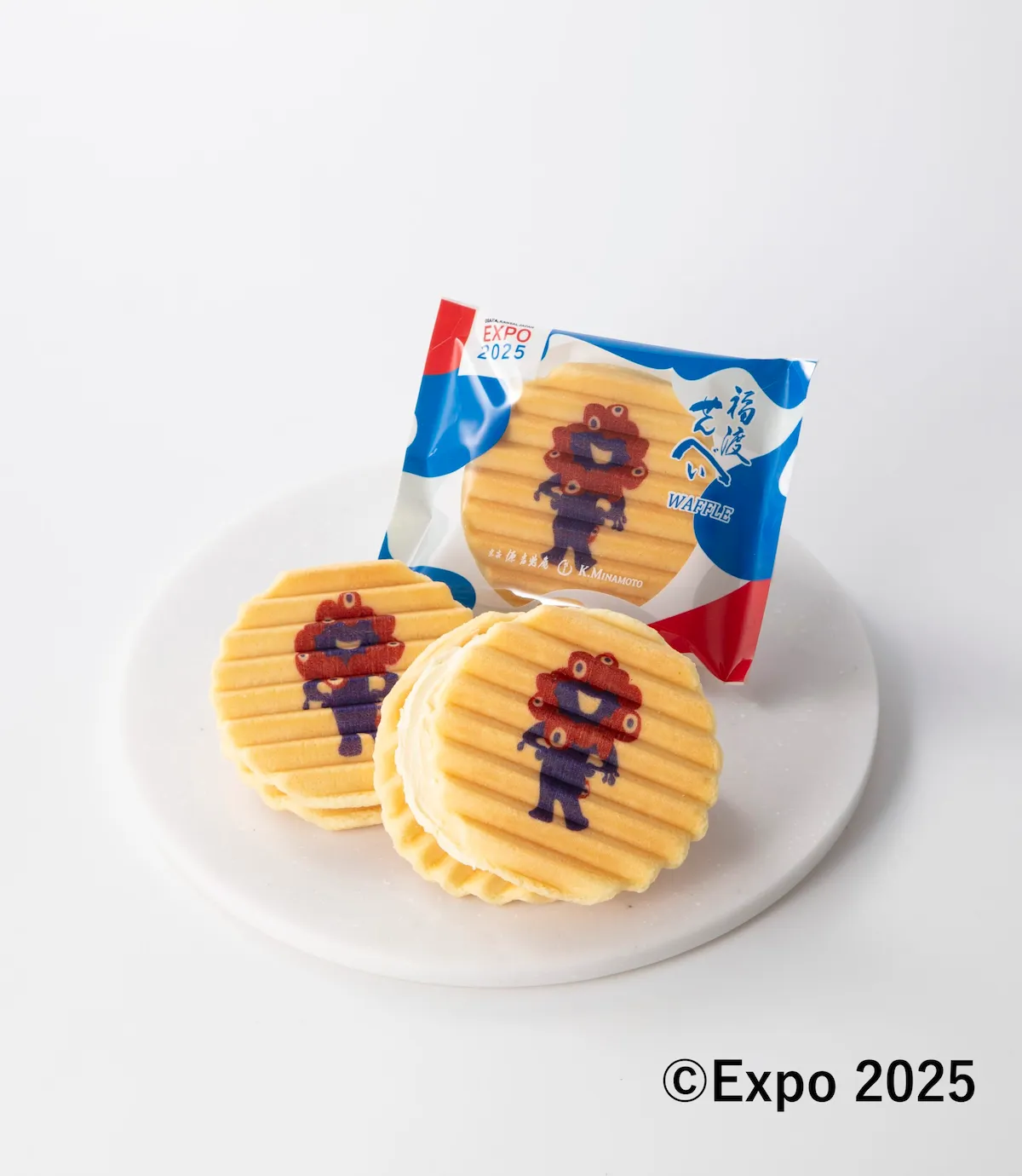 洋風のおせんべいに優しい甘さのクリームがおいしい福渡せんべいにミャクミャクがプリントされました⭐️