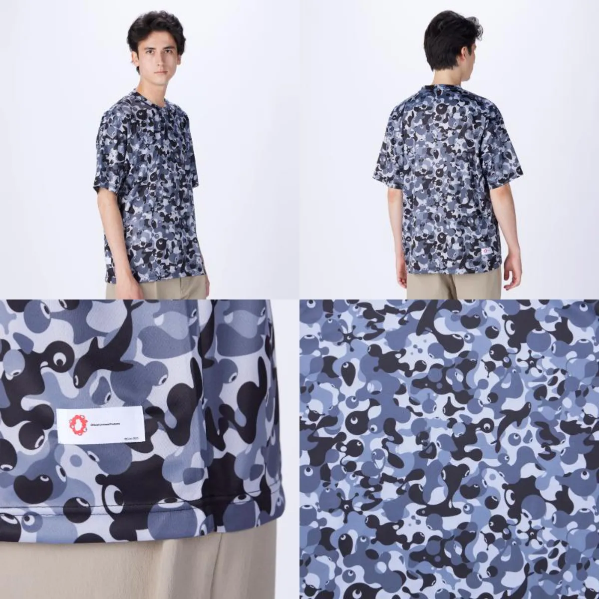 モノトーンカラーにミャクミャクのモチーフをあしらった総柄デザイン。吸汗速乾素材で快適な着心地を保ち、UPF15仕様で紫外線対策も可能。動きやすさとデザイン性を兼ね備えた1枚です。