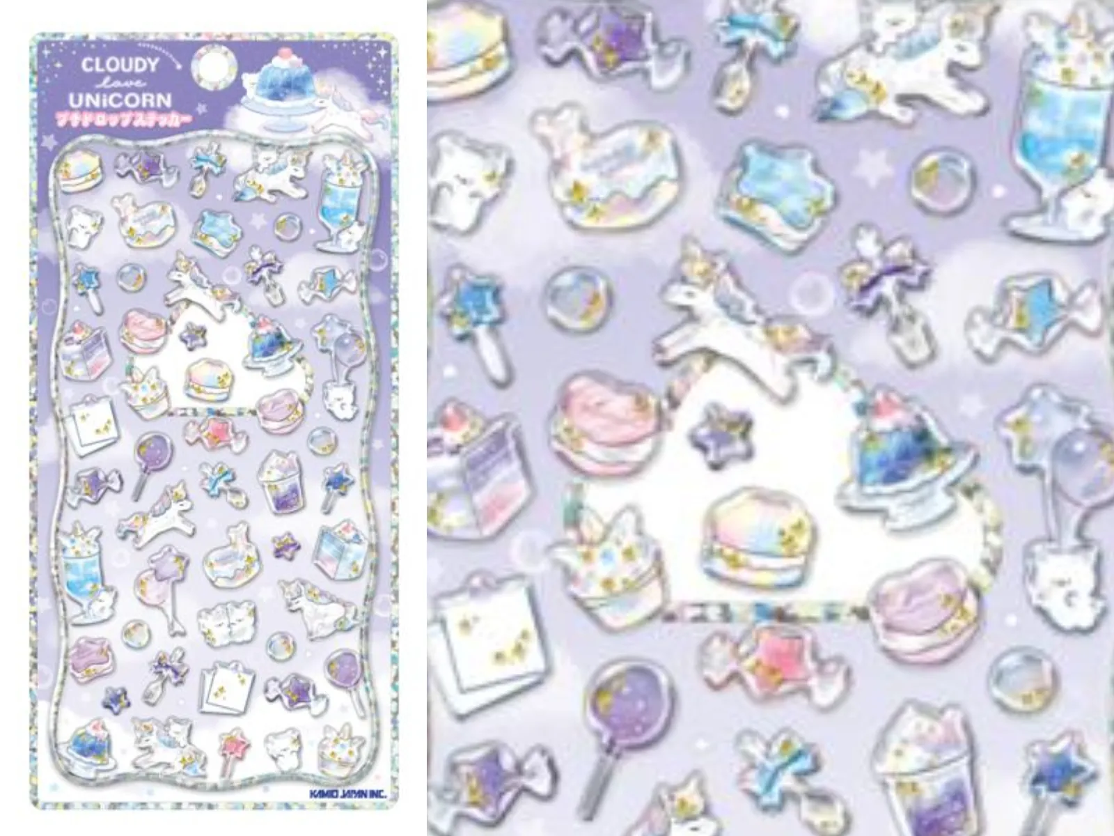 まるでキラキラ宝石みたい!ぷっくりちゅるんな立体シール「プチドロップステッカー」から「クラウディユニコーン」デザイン。ゆめかわいいメルヘンな世界観のかわいいシールがいっぱい。色々なサイズのシールがあるからデコにもバッチリ!