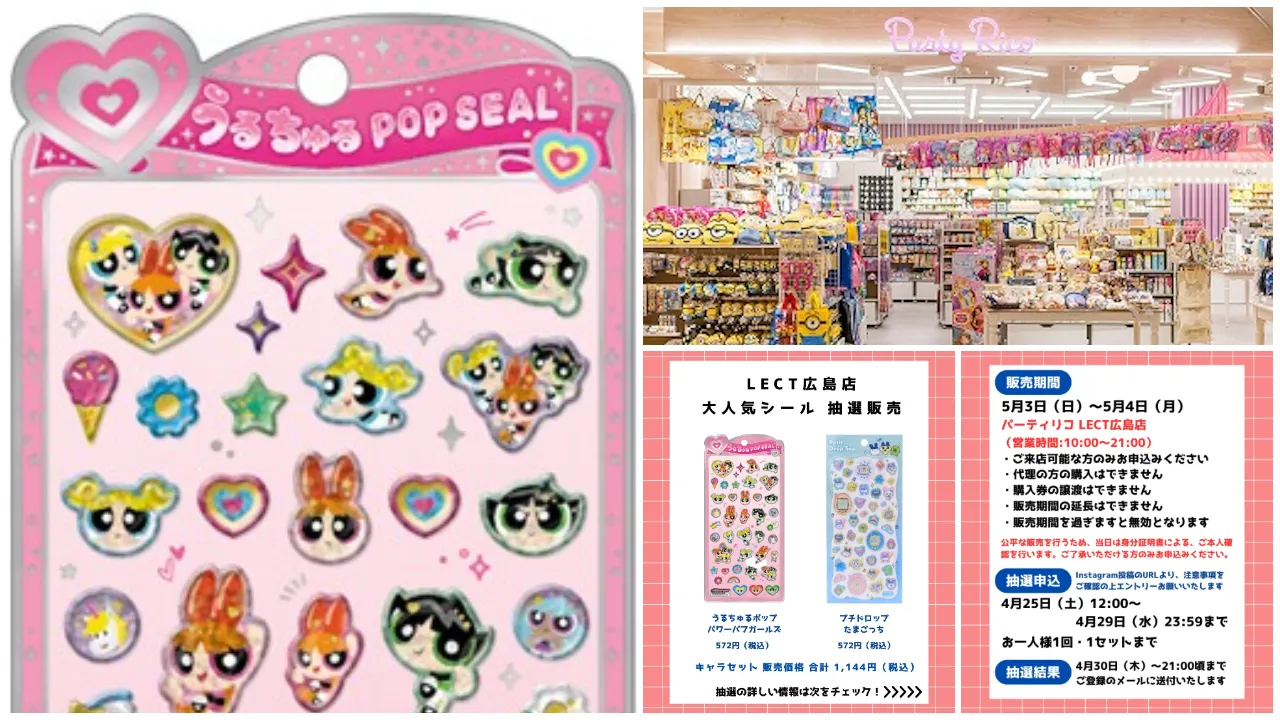 広島県近郊のシール好きさん集まれ〜!かわいいキャラクターグッズに出会える雑貨店「パーティリコ LECT(レクト)広島店」にて、2026年5月3日(日・祝)〜2026年5月4日(月・祝)の期間限定で、うるちゅるポップシール・プチドロップシールの抽選販売が決定しました!気になる商品情報や抽選エントリー方法などを詳しくご紹介しますので、ぜひチェックしてみてください。