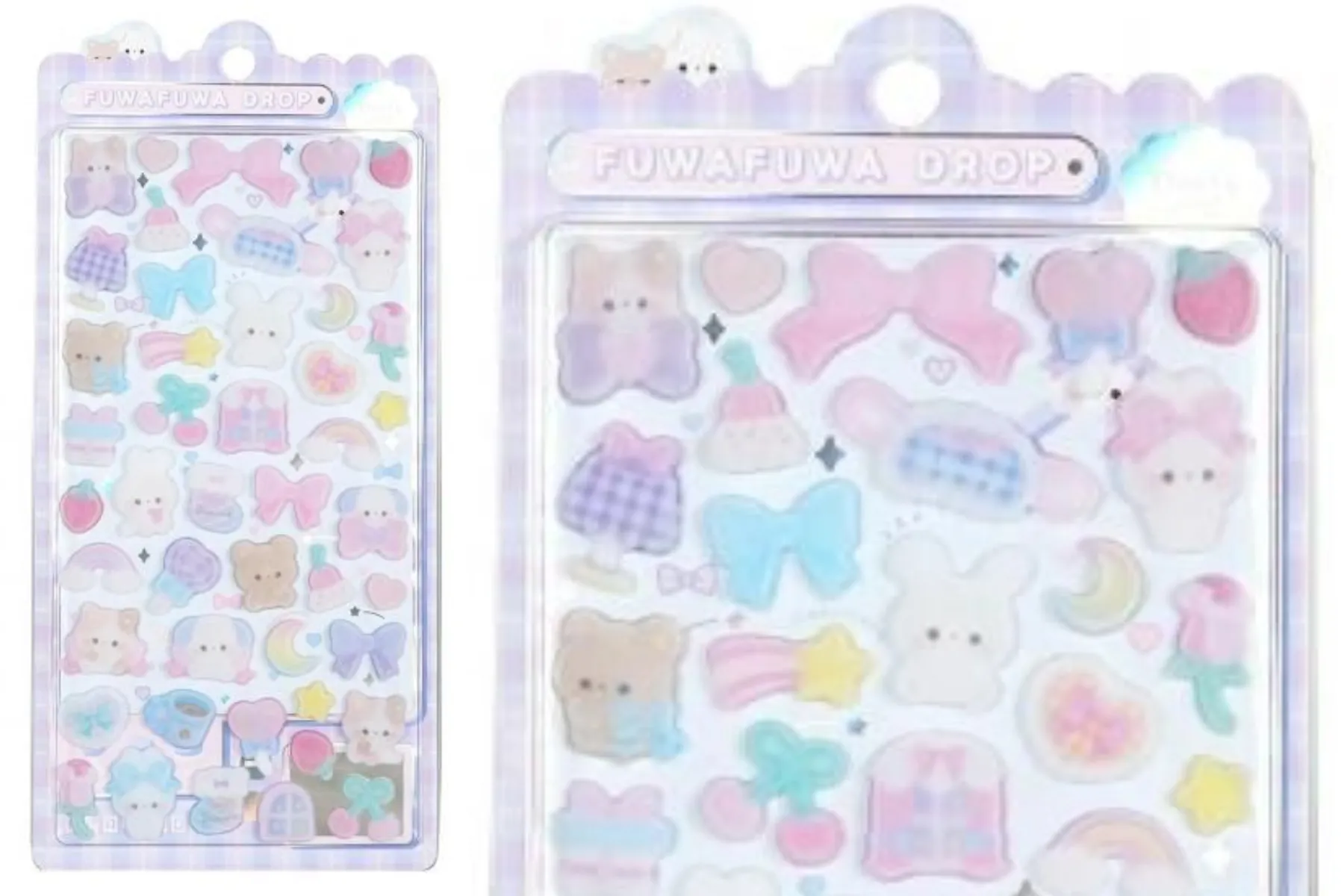 ぷっくり&フロッキー加工のボンドロ「ふわふわドロップシリーズ」より『ぬいぬいふわふわ』。まるで小さなぬいぐるみみたいな立体シール!ふわふわな手触りで癒し度抜群!