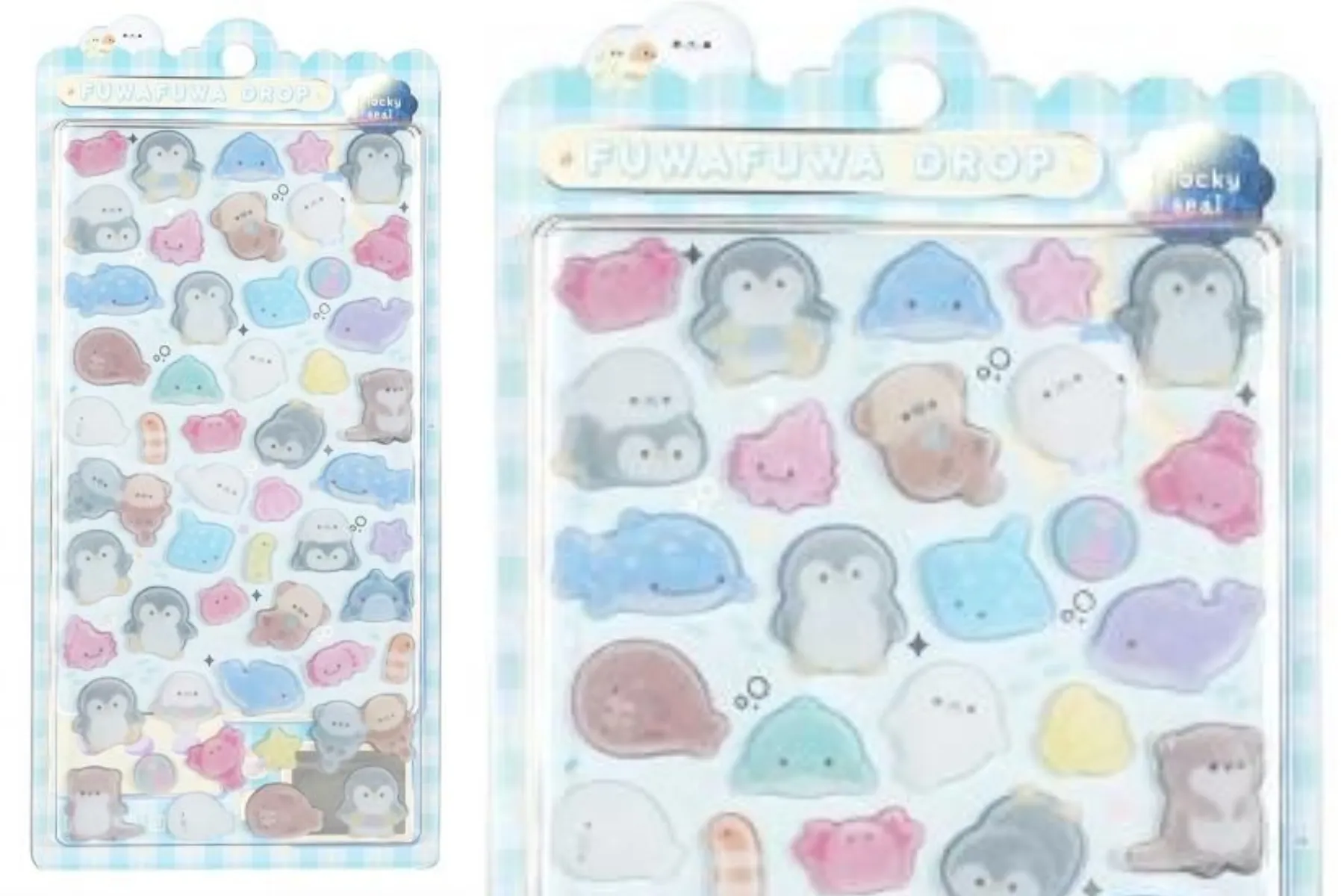 ぷっくり&フロッキー加工のボンドロ「ふわふわドロップシリーズ」より『うみうみふわふわ』。ペンギンやアザラシなど海の仲間たちが、フロッキー素材で可愛く表現されています。眺めているだけでもほっこり癒されそう!