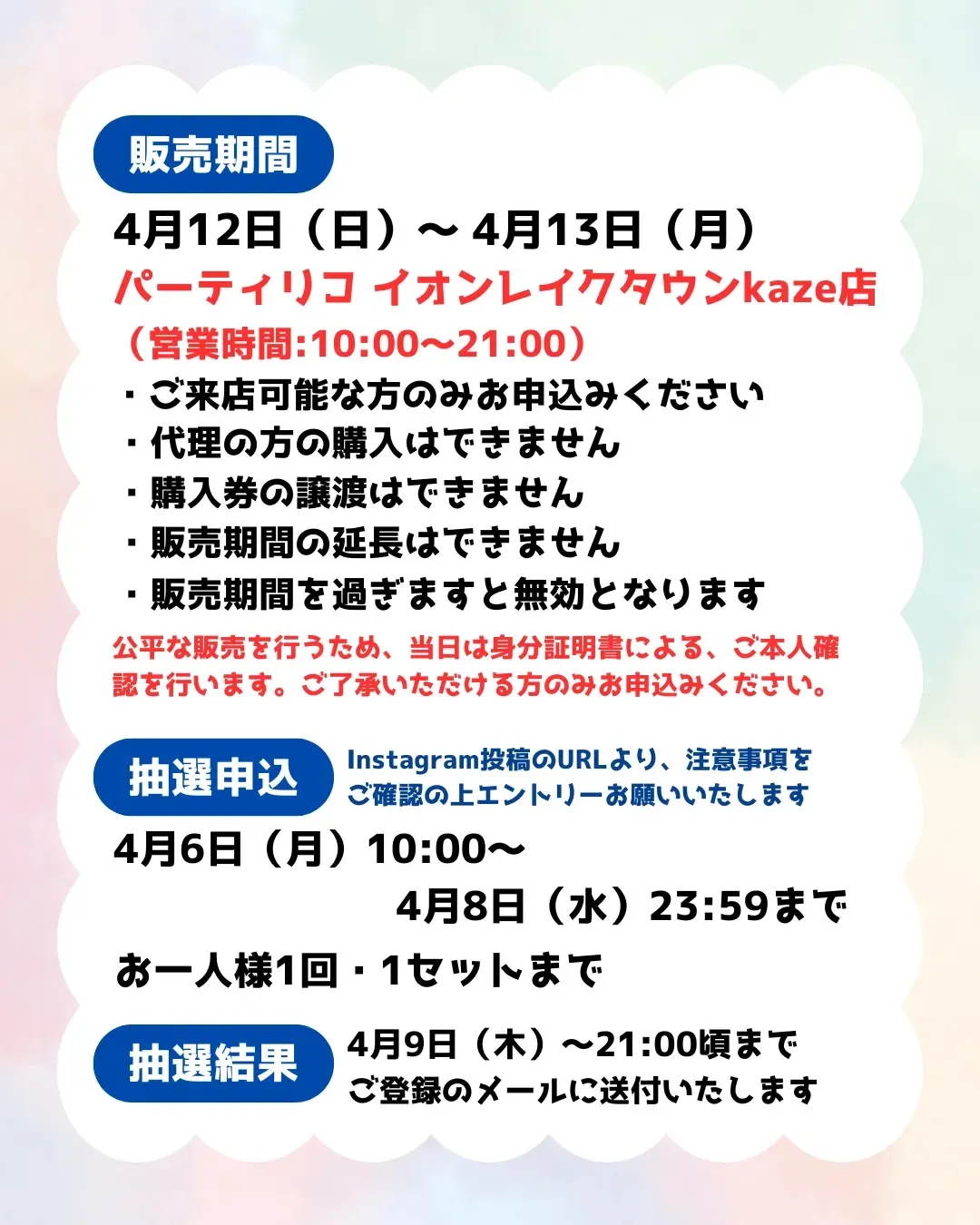 パーティリコ】イオンレイクタウンkaze店で抽選販売きたー♡