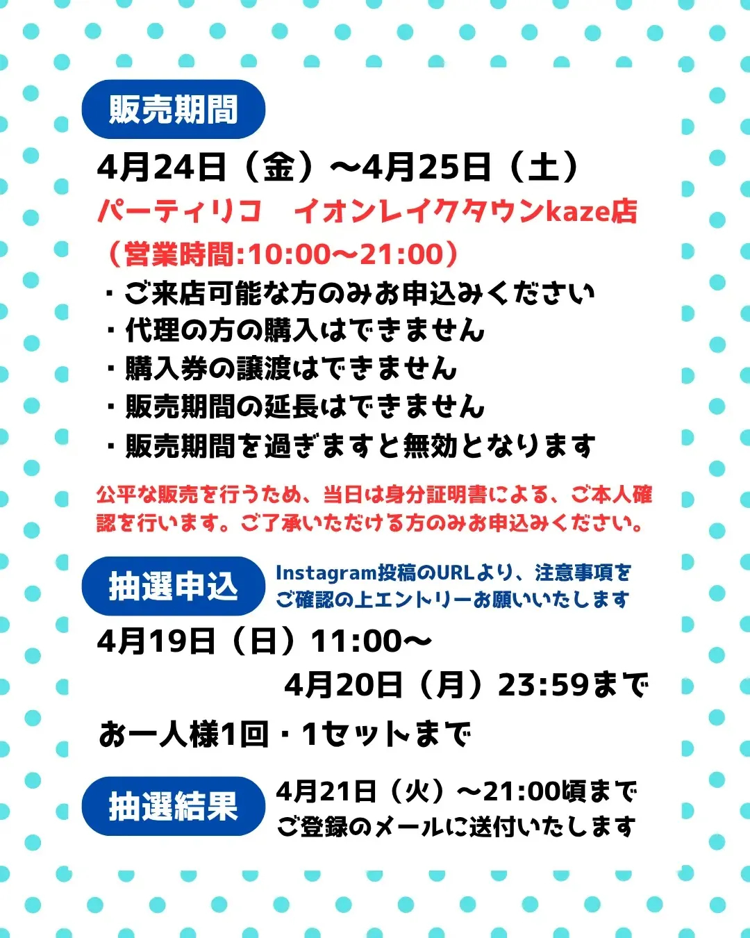 【抽選応募期間】4月19日(日)11:00~4月20日(月)23:59
