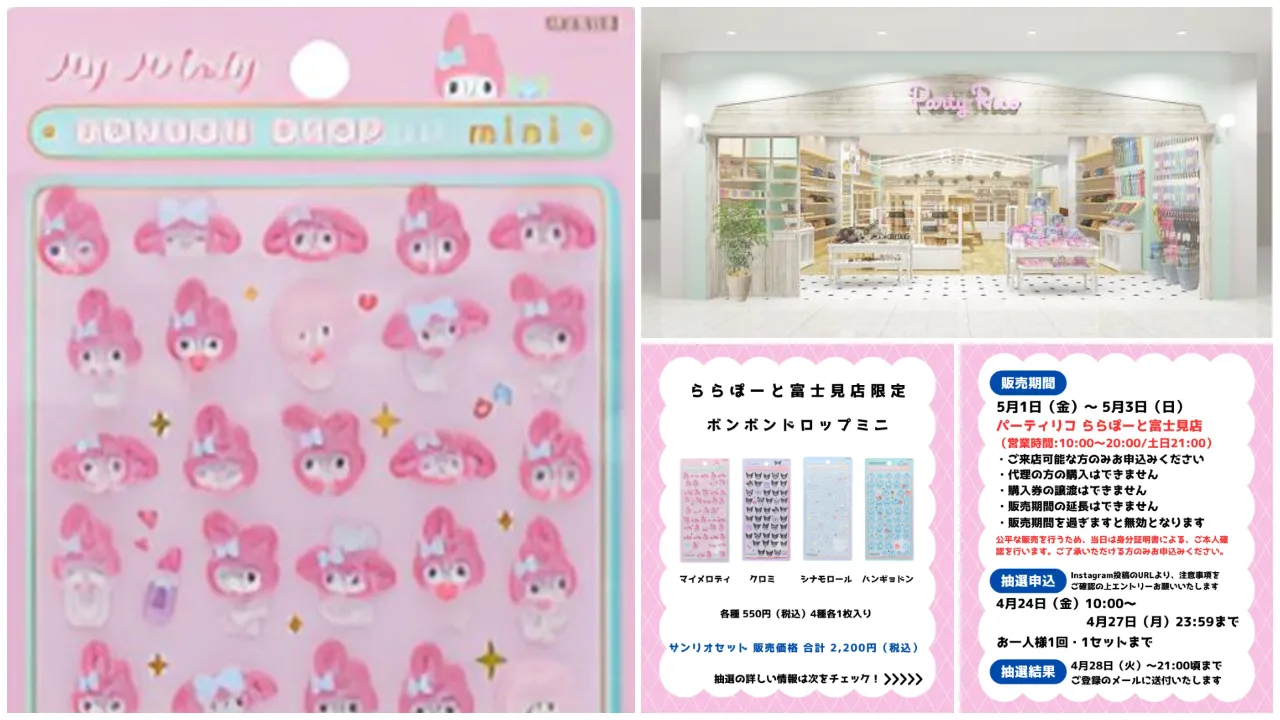 埼玉県近郊のシール好きさん&サンリオファン集まれ〜!かわいいキャラクターグッズに出会える雑貨店「パーティリコ ららぽーと富士見店 (埼玉県)」にて、2026年5月1日(金)〜2026年5月3日(日・祝)の期間限定で、「ボンボンドロップシールmini サンリオセット」の抽選販売が決定しました!気になる商品情報や抽選エントリー方法などを詳しくご紹介しますので、ぜひチェックしてみてください。