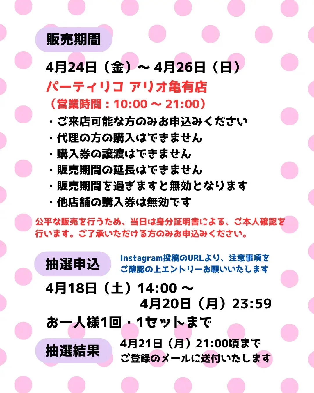 【パーティリコ】アリオ亀有店でボンドロ抽選販売きたー♡