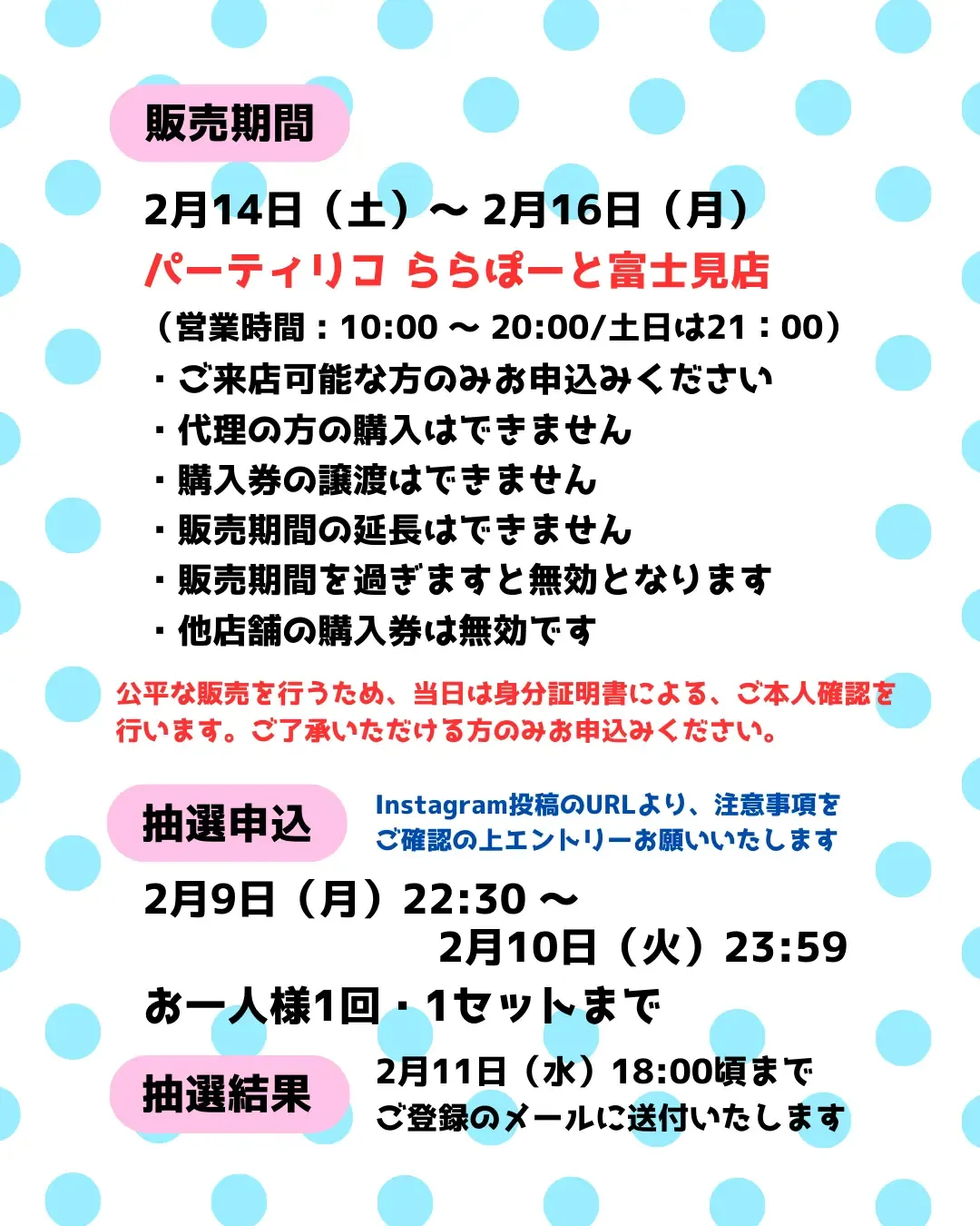 【パーティリコ】ららぽーと富士見店でボンドロ抽選販売きたー♡