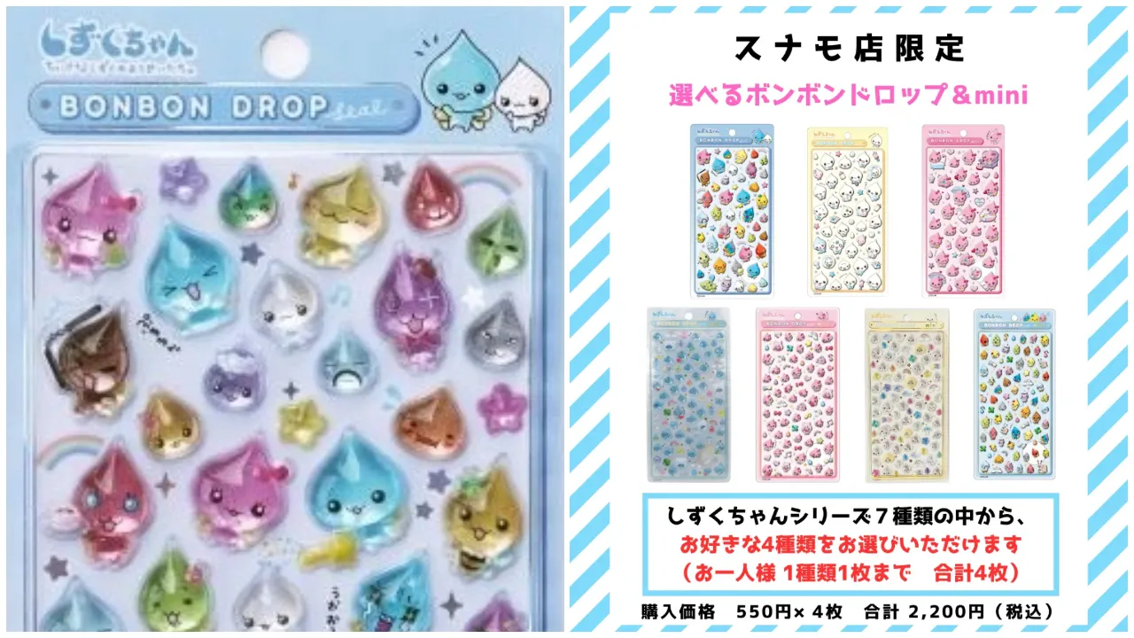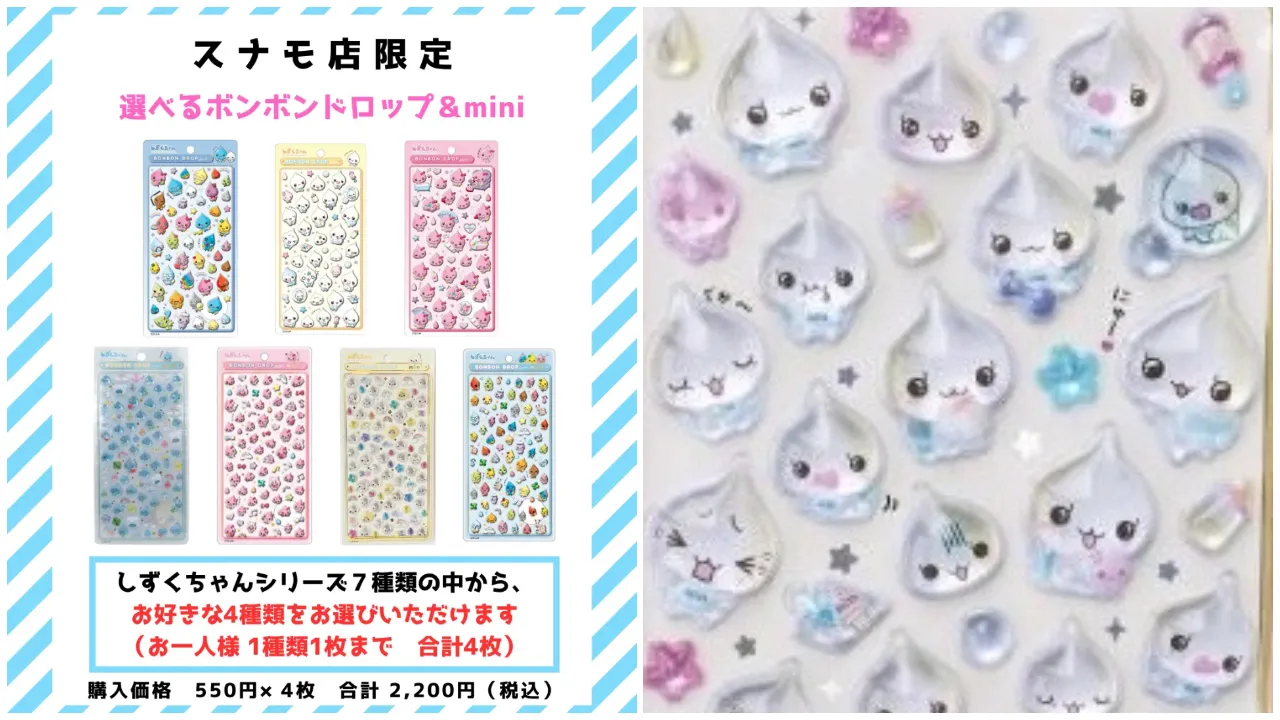 対象商品は、全国で入手困難となっているボンボンドロップシール&mini(ミニ)のしずくちゃんシリーズ。