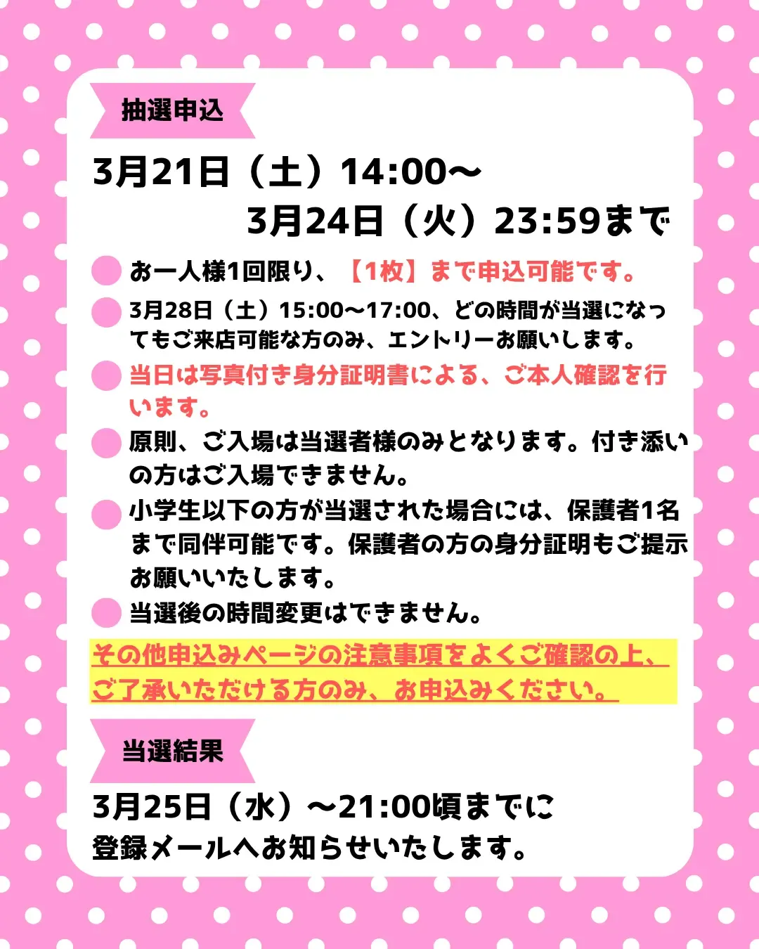 ※抽選販売に関する店舗へのお問い合わせはご遠慮ください。