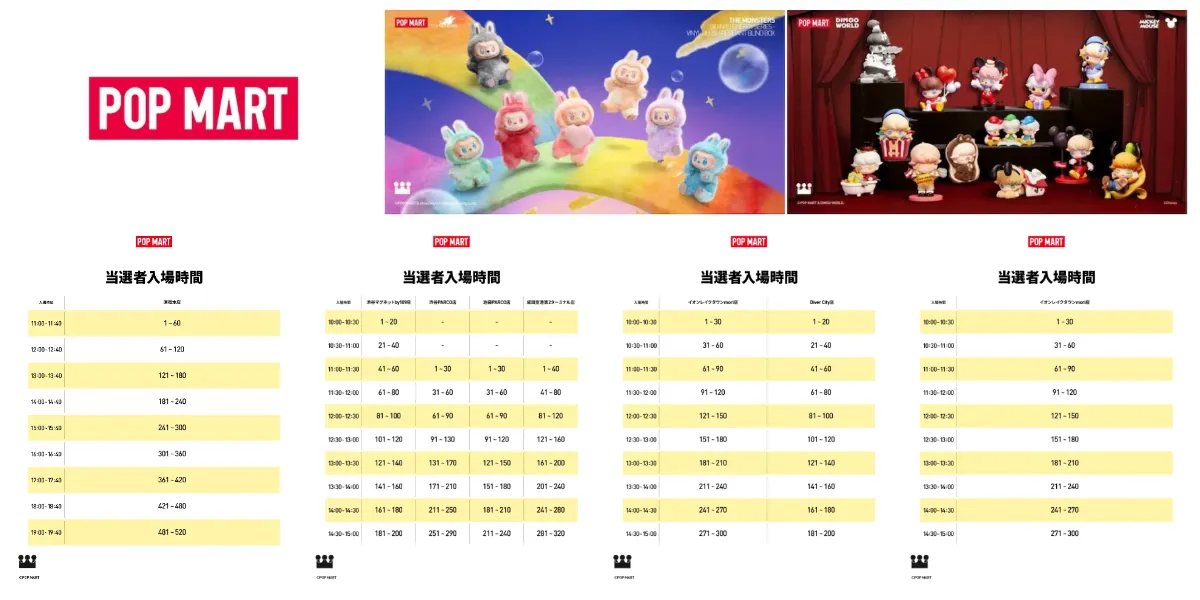 POP MART(ポップマート)は公式SNSにて、先日実施された関東直営店舗の入店整理券抽選において、抽選ページの表記および設定に一部不備があることが判明したため、再抽選を行うことを発表しました。