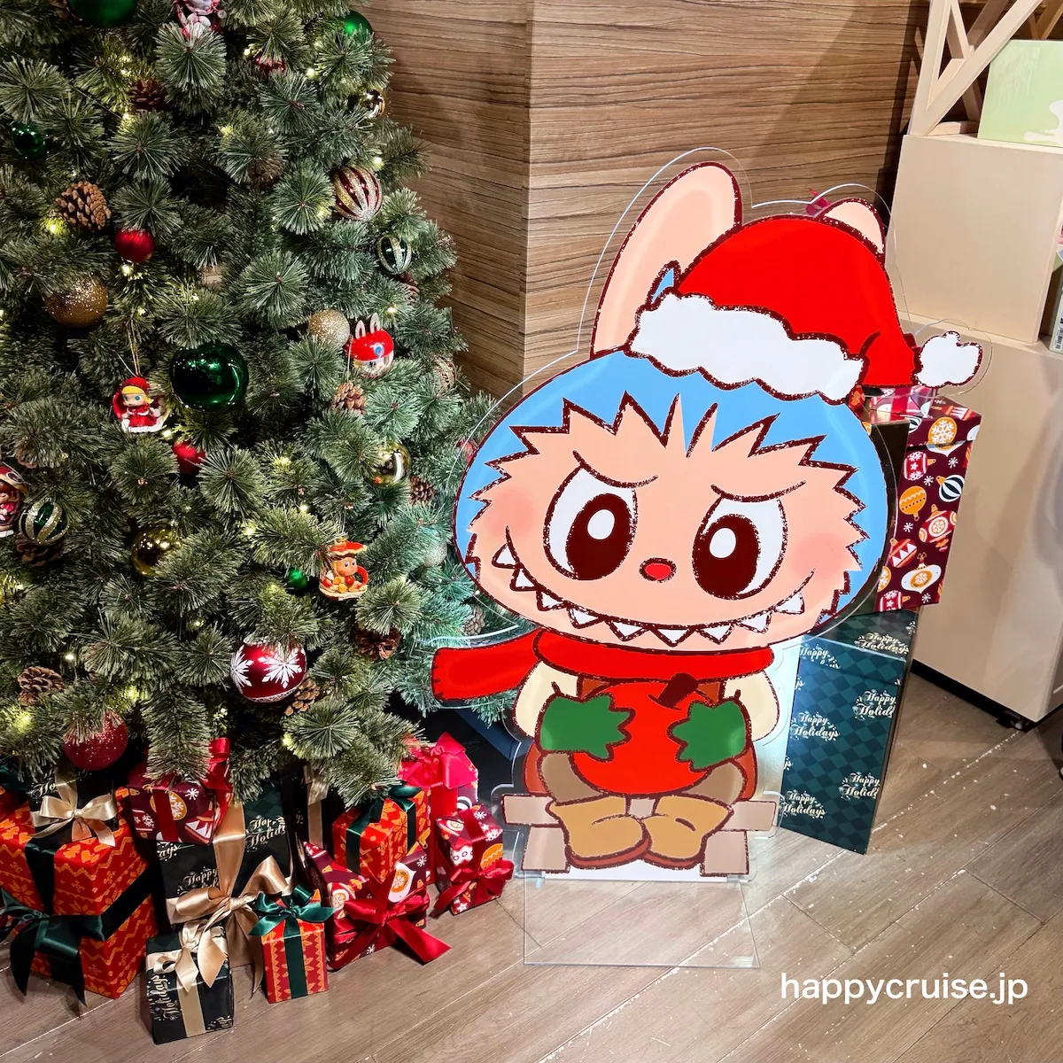 室内の「ショップエリア」に入ると、サンタ帽をかぶったLABUBU(ラブブ)がお出迎え。