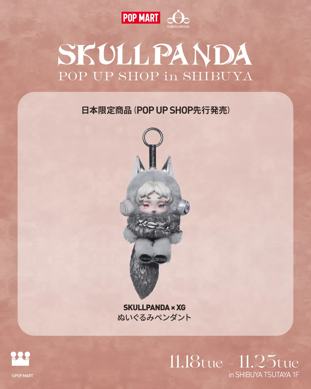 SKULLPANDA(スカルパンダ)のファンや、XG(エックスジー)のファン「ALPHAZ(アルファズ)」にビッグニュース!POP MART(ポップマート)の期間限定ショップ「SKULLPANDA POP UP SHOP」にて、SKULLPANDA × XGのコラボぬいぐるみペンダントが先行販売として初登場します!2025年11月18日(火)からスタートするポップアップショップ「SKULLPANDA POP UP SHOP」は完全事前抽選制の入店となりますので、ぜひお見逃しなく☆