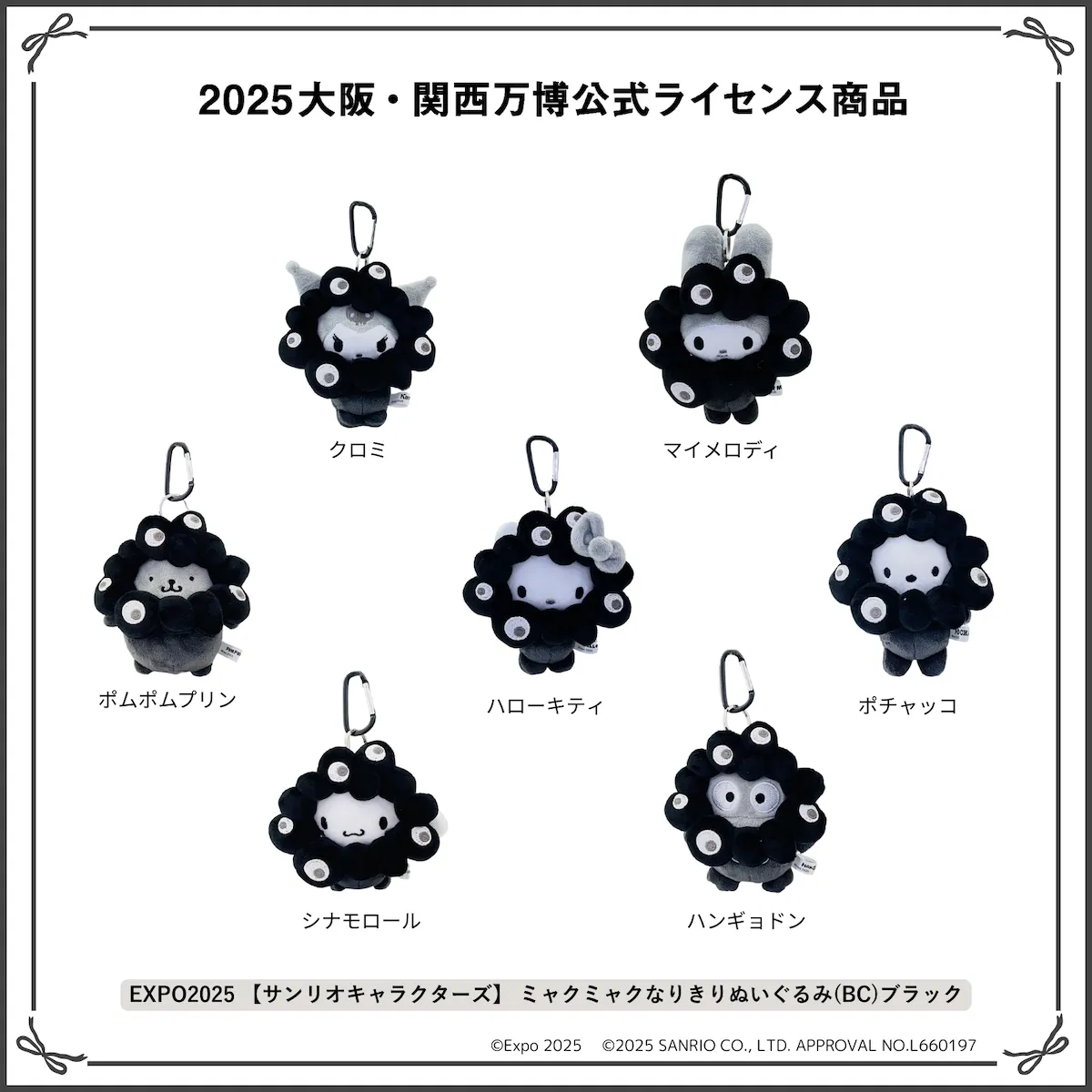 【ミャクミャク×サンリオ】EXPO2025 【サンリオキャラクターズ】 ミャクミャクなりきりぬいぐるみ(BC)ブラック 各3,520円