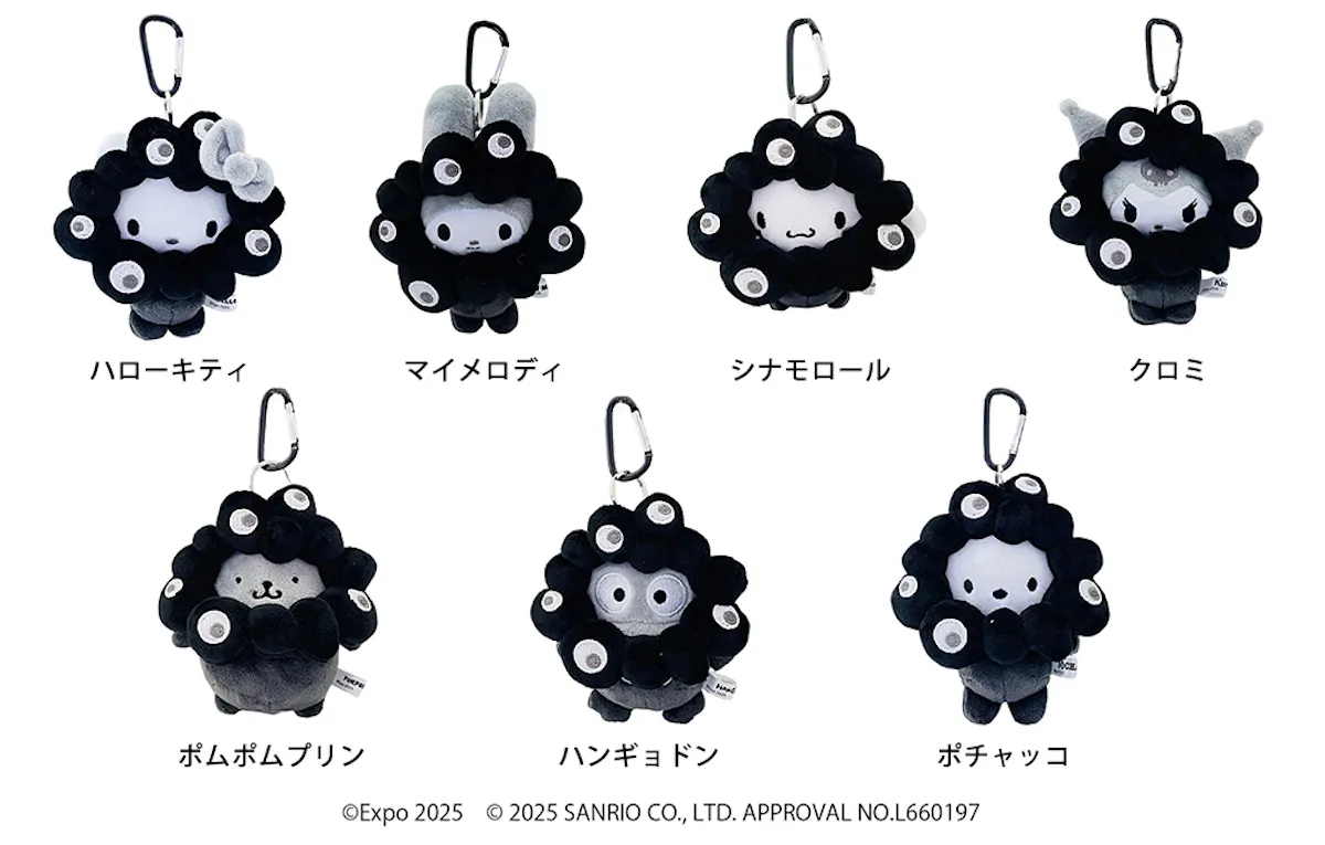 サンリオキャラクターズがミャクミャクになりきったシリーズから、大人気のモノクロぬいぐるみが、2025大阪・関西万博 オフィシャルストア 大丸梅田店にて再販決定!