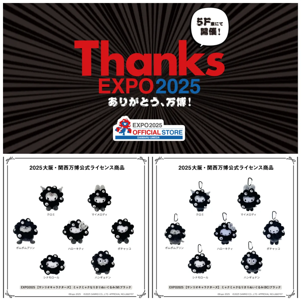 【ミャクミャク×サンリオ】黒ミャクミャクになりきりシリーズの再販決定!万博公式ストア(大丸梅田店)で抽選販売スタート!