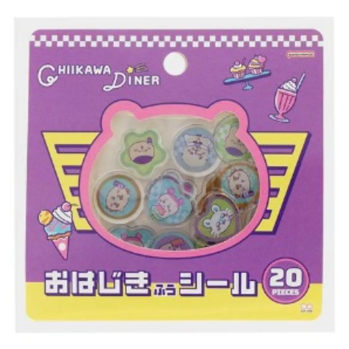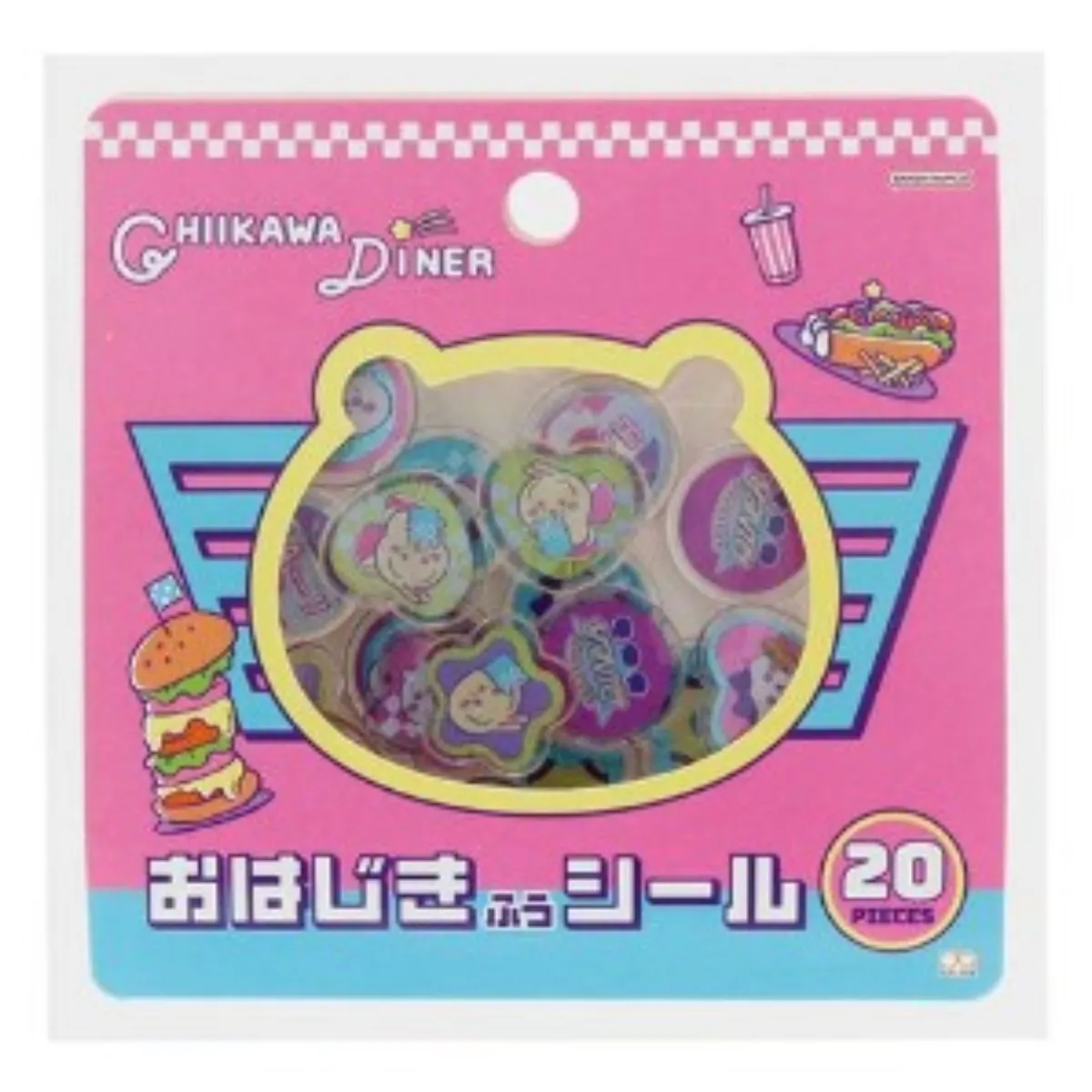 アメリカンダイナーでランチを楽しむちいかわたちがとってもキュート。おはじきのようにクリアで厚みのあるピースシールです。ちいかわ・ハチワレ・うさぎデザイン。(10柄各2枚計20枚)