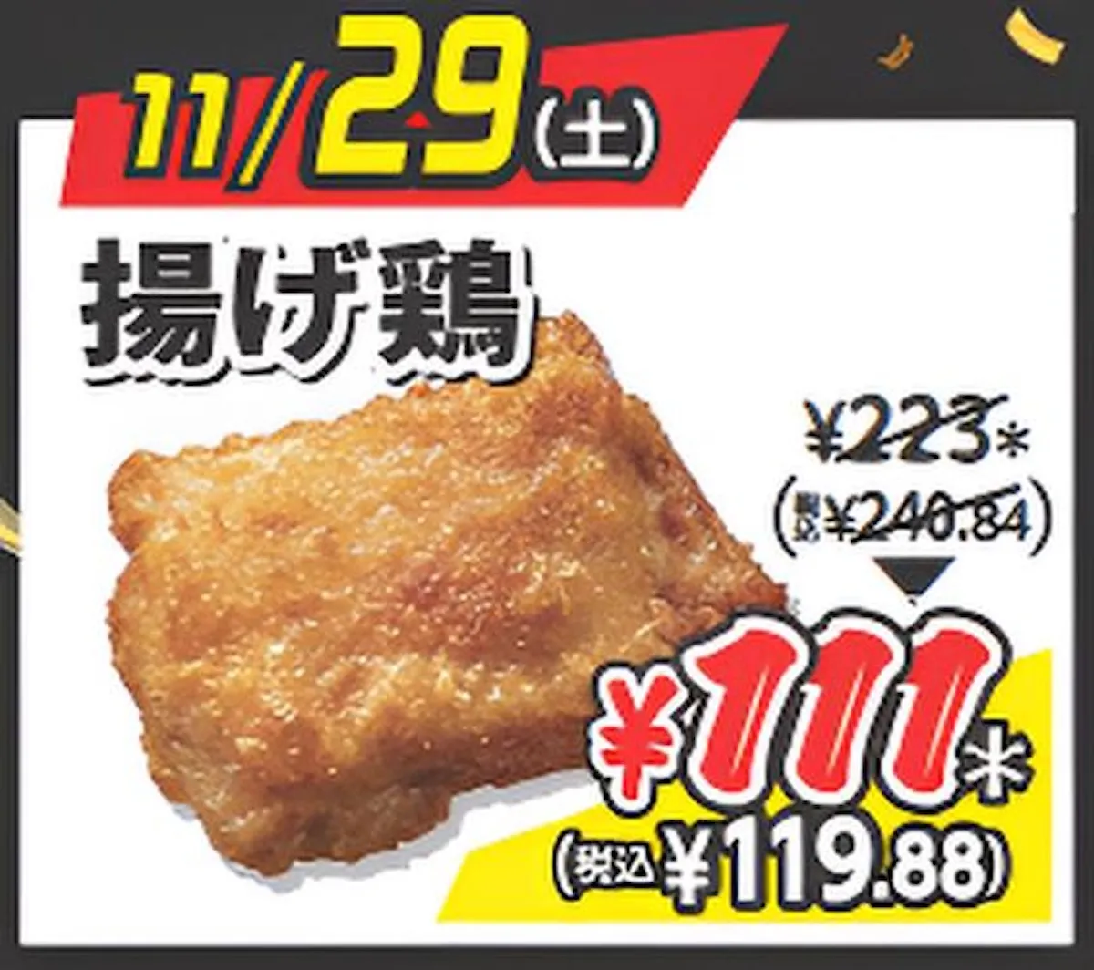 揚げ鶏 通常223円(税込240.84円)111円(税込119.88円)
